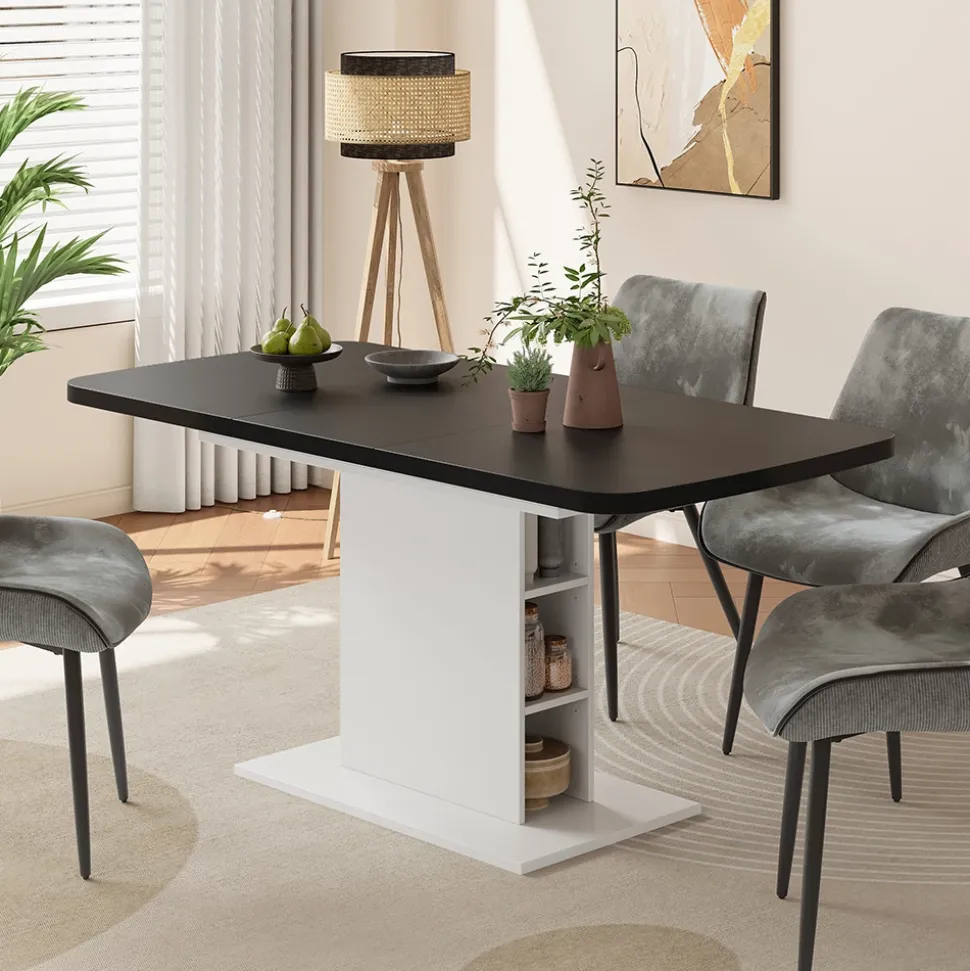 - Praktisch: Der ausziehbare Esszimmertisch überzeugt mit 4 höhenverstellbaren Einlegeböden und flexibler Funktion, sodass er sich ideal an unterschiedliche Bedürfnisse und Räume anpasst.