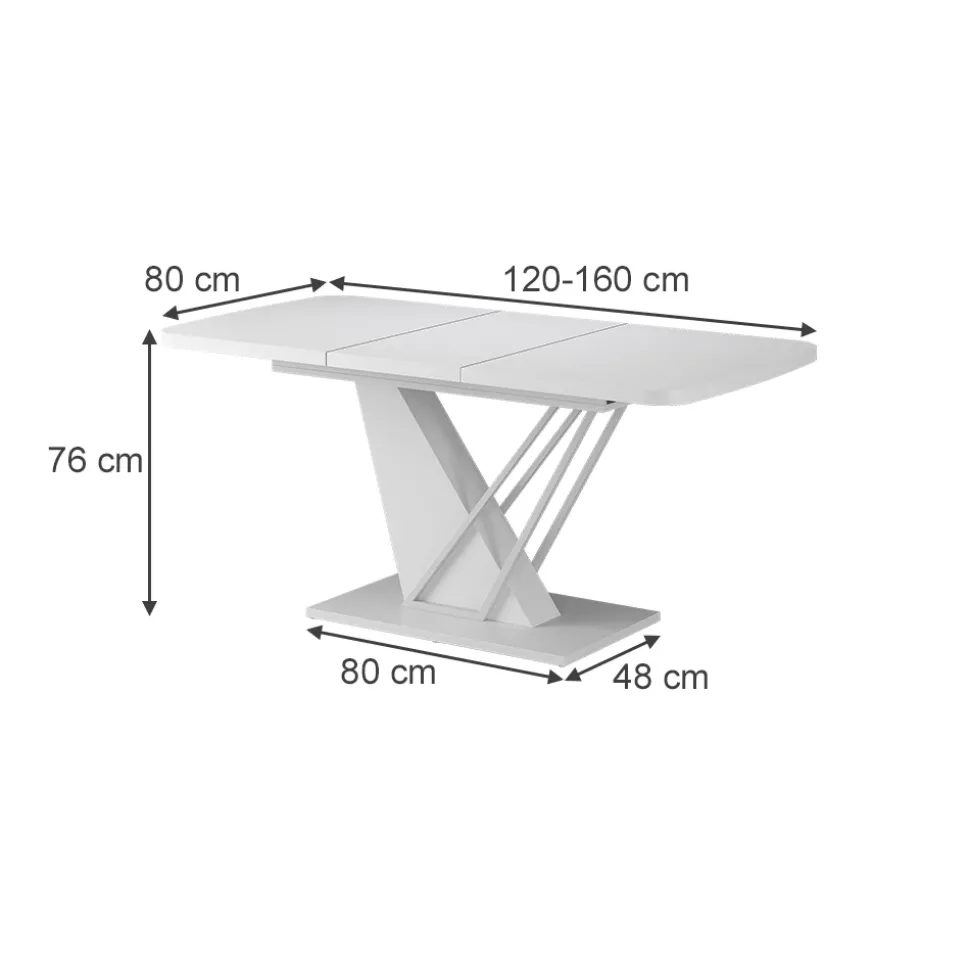- MAßE: Der Küchentisch hat folgende Maße: Breite: 120-160 cm, Tiefe: 80 cm, Höhe. 76 cm. Die detaillierten Größen sind auf den Fotos angegeben.