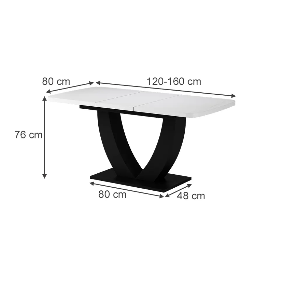 - MAßE: Der Küchentisch hat folgende Maße: Breite: 120-160 cm, Tiefe: 80 cm, Höhe. 76 cm. Die detaillierten Größen sind auf den Fotos angegeben.
