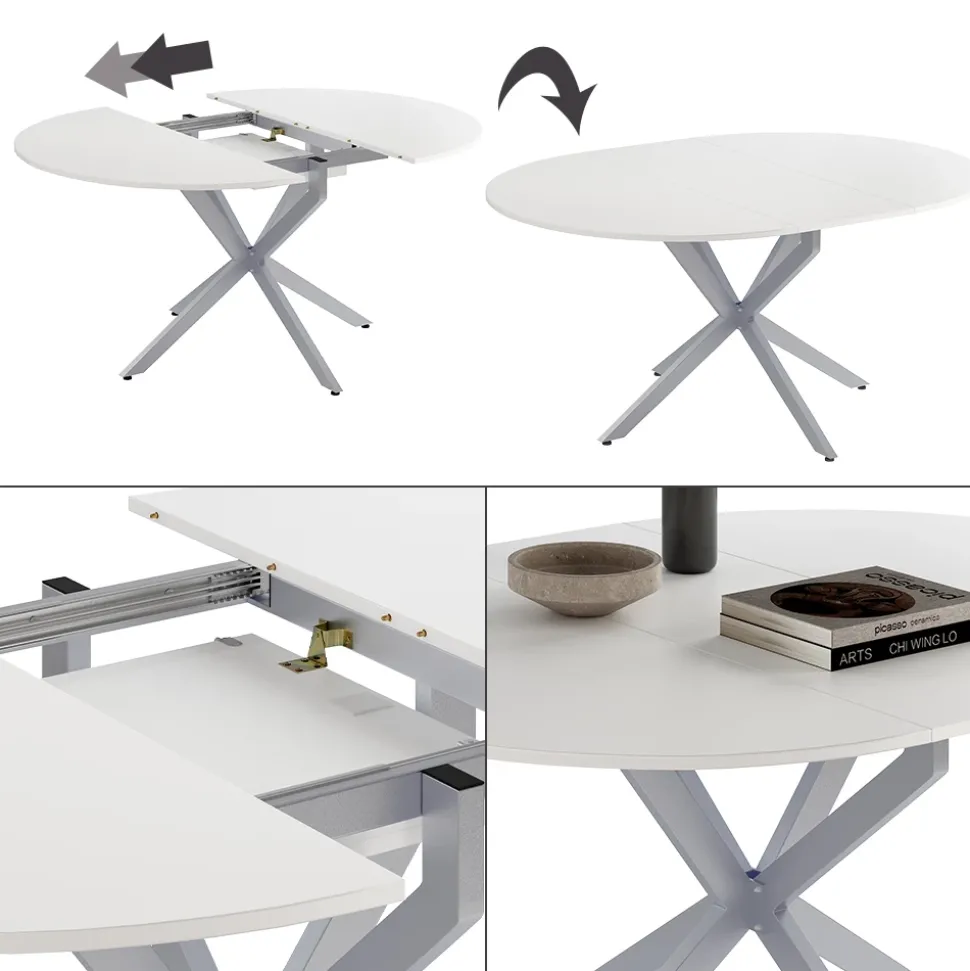 - Der ausziehbare Esszimmertisch eignet sich perfekt für Familientreffen und verfügt über eine runde Form, die ideal für das Esszimmer geeignet ist.