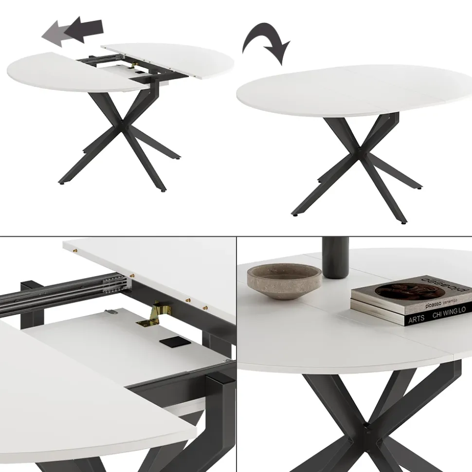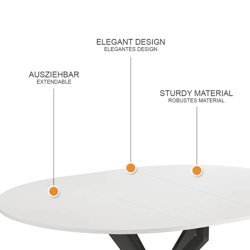 - Der ausziehbare Esszimmertisch eignet sich perfekt für Familientreffen und verfügt über eine runde Form, die ideal für das Esszimmer geeignet ist.