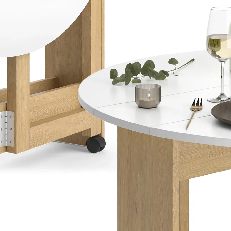 - Der ausziehbare Esszimmertisch verfügt über 2 Rollen und ist eine praktische Lösung für die Küche. Seine elegante Farbkombination verleiht dem Tisch eine ansprechende Optik.