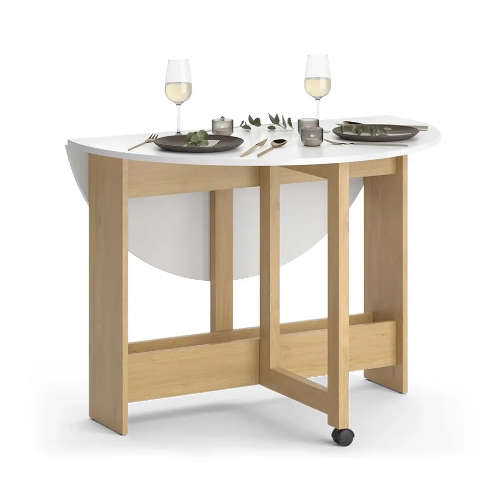 - MAßE: Der ausklappbare Küchentisch hat einen Ø von 100 cm und eine Höhe von 73 cm. Alle detaillierten Maße sind auf den Fotos angegeben.