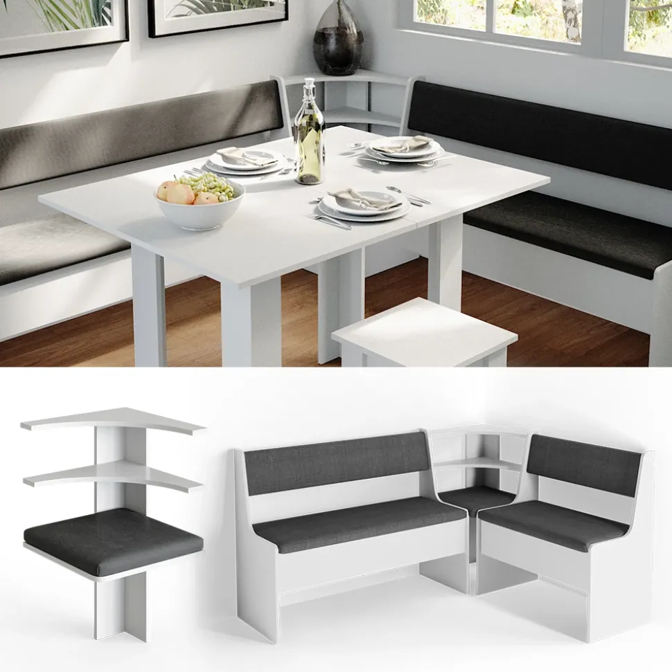 - Die Essecke bietet einen ergonomischen Sitz und eine gepolsterte Rückenlehne. Sie ist platzsparend und ideal für kleine Räume.