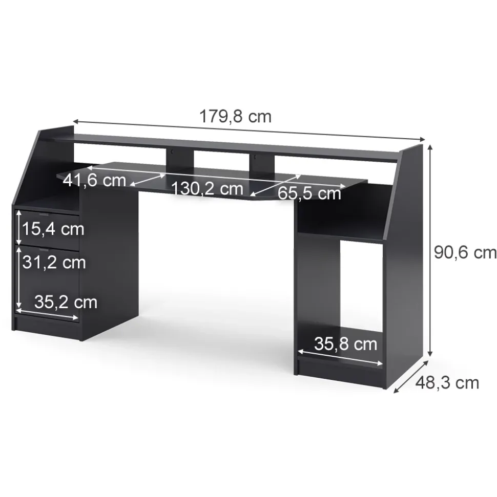 - MAßE: Der Gaming Schreibtisch hat eine Breite von 179,8 cm, eine Höhe von 90,6 cm und eine Tiefe von 65,5 cm. Alle detaillierten Größen sind auf den Fotos angegeben.