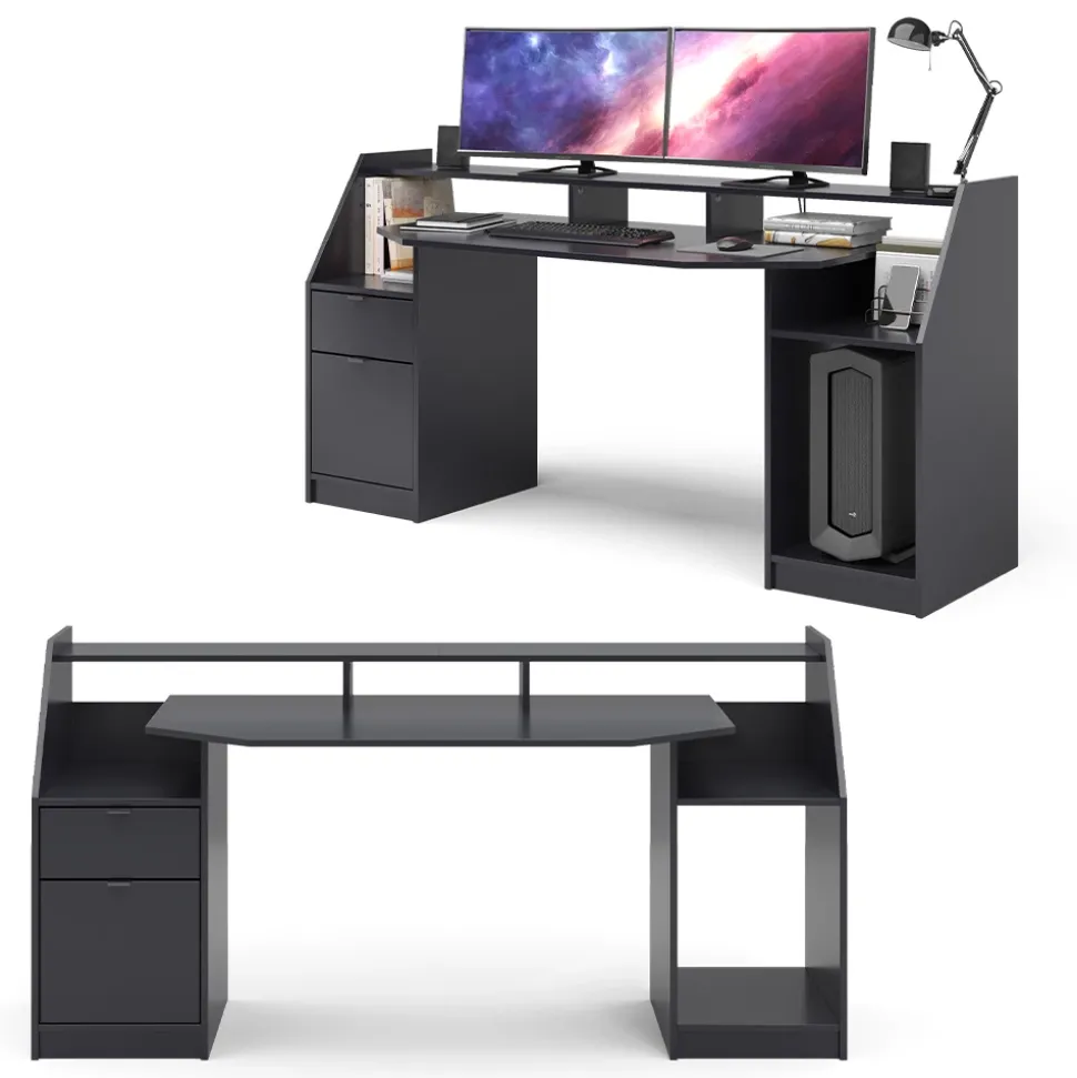 - Der Computertisch bietet offene und geschlossene Ablagen mit einem Regal für Systemeinheit und ein Display über Kopf für eine bequeme Nutzung.