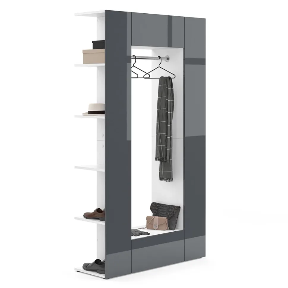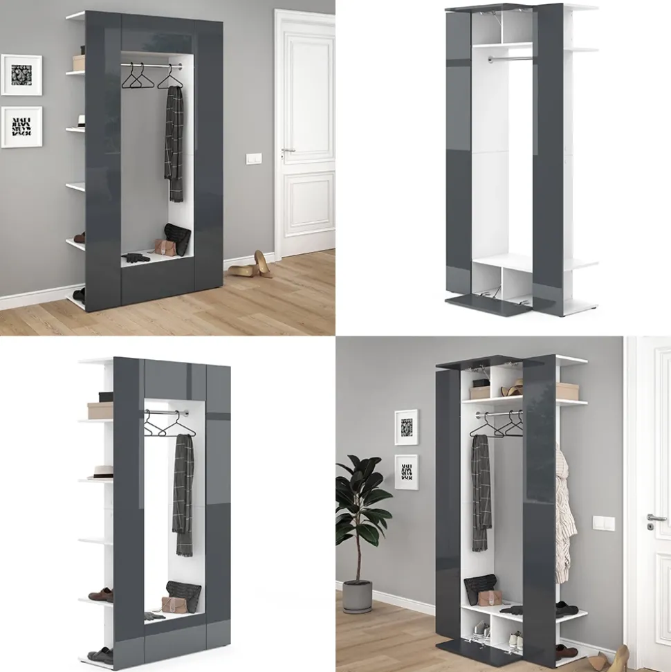 - Das Aufbewahrungsregal bietet viel Platz zum Verstauen von Gegenständen und hat geschlossene Fächer oben und unten sowie einen Garderobenständer.