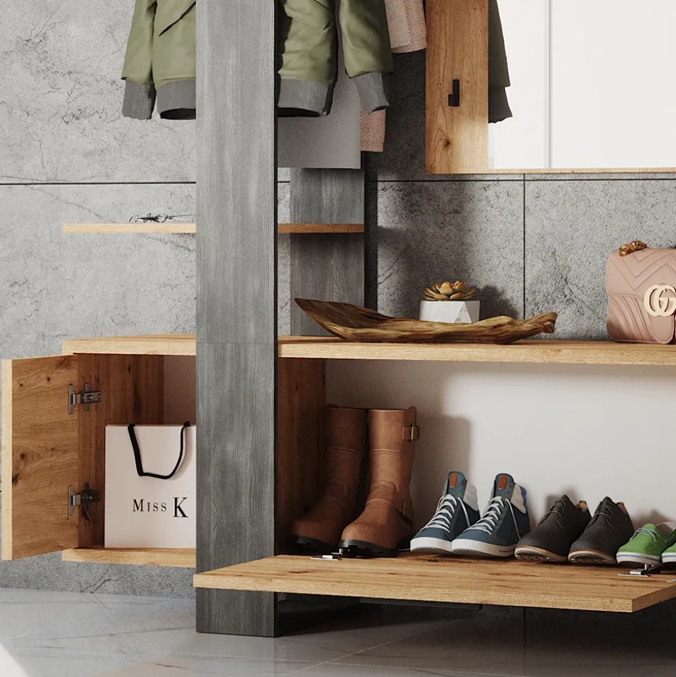 Sie betreten Ihr Zuhause und der erste Raum, der Sie empfängt, ist die Eingangshalle. Aber wie oft haben Sie sich gefragt, wie Sie diesen Raum funktional und ästhetisch ansprechend gestalten können? Wir haben für Sie die Lösung: das Porto-Produkt. Mit seinem kreativen Design fügt es sich perfekt in jeden Einrichtungsstil ein. Der große Spiegel hilft Ihnen, Ihr Aussehen zu überprüfen, bevor Sie das Haus verlassen, während die klappbare Schuhablage für mehr Platz sorgt. Der Kleiderständer bietet zusätzlichen Stauraum, um Ihre Jacken und Mäntel stilvoll zu organisieren. Das Porto-Produkt passt wunderbar zu den anderen Möbelstücken in Ihrer Eingangshalle und sorgt dafür, dass Sie immer einen guten Eindruck hinterlassen, wenn Sie Ihr Haus betreten oder verlassen. Mit Porto wird Ihre Eingangshalle zum wahren Hingucker!