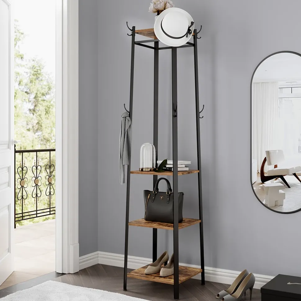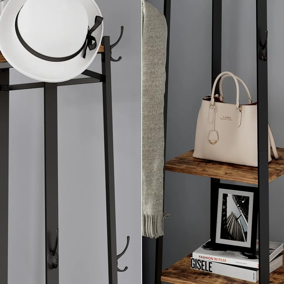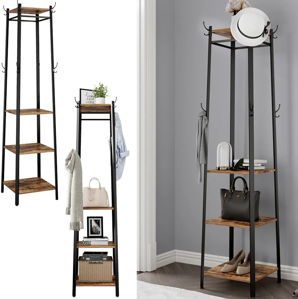 - Diese Garderobe mit Haken verfügt über ein modernes Design und eignet sich ideal für den Flur. Mit drei offenen Ablagen bietet sie ausreichend Stauraum für Ihre Alltagsgegenstände.