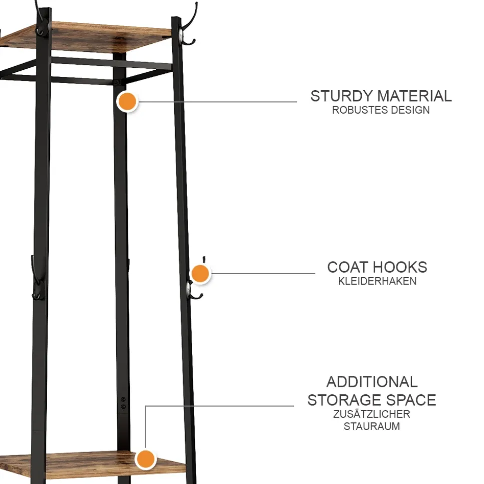 - MATERIAL: Die stehend Garderobe besteht aus pflegeleichter, melaminharzbeschichteter 16 mm Spanplatte.