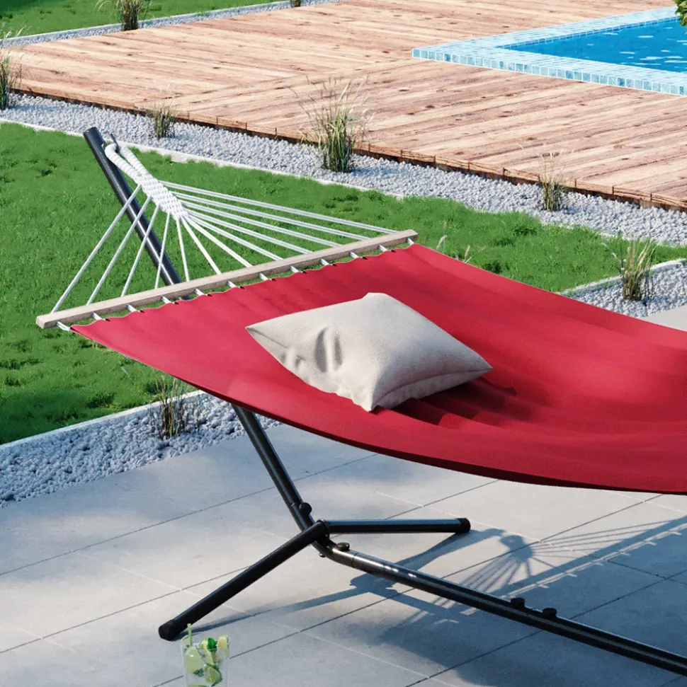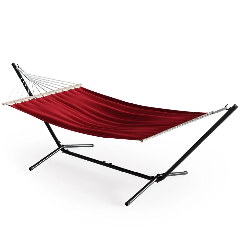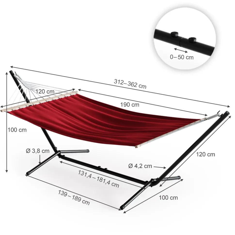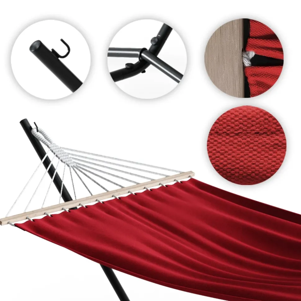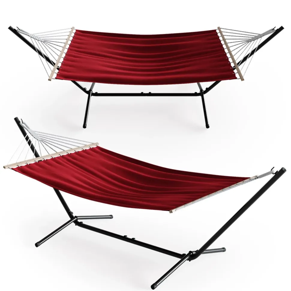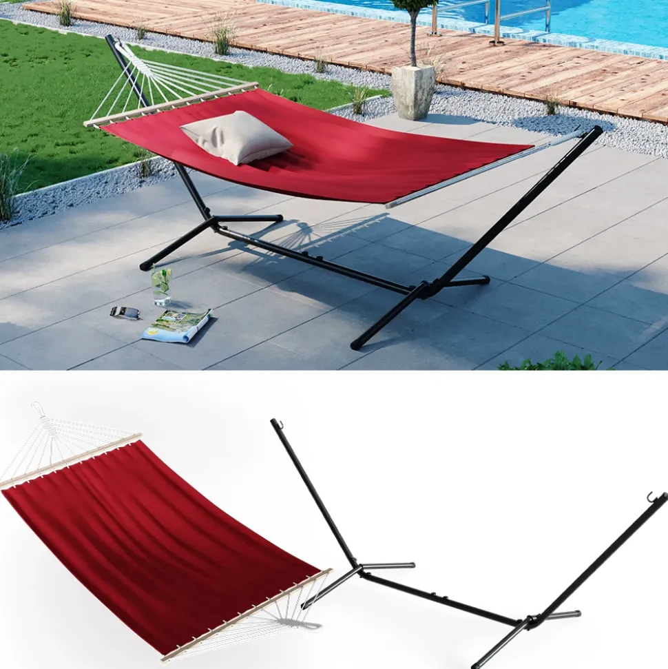 - Das Hängebett unterstützt bis zu 185 kg und lässt sich schnell auf- und abbauen. Das rostbeständige Metall sorgt für eine langlebige Nutzung.