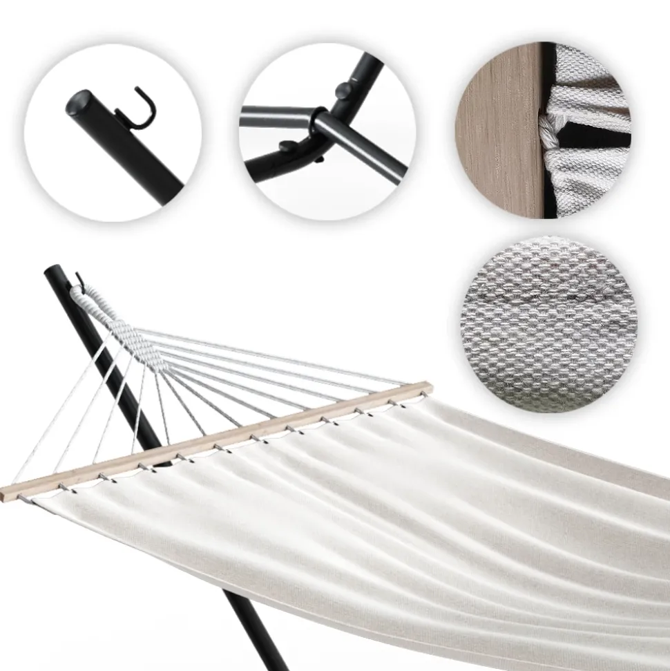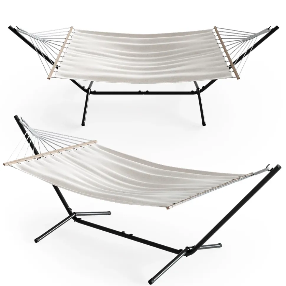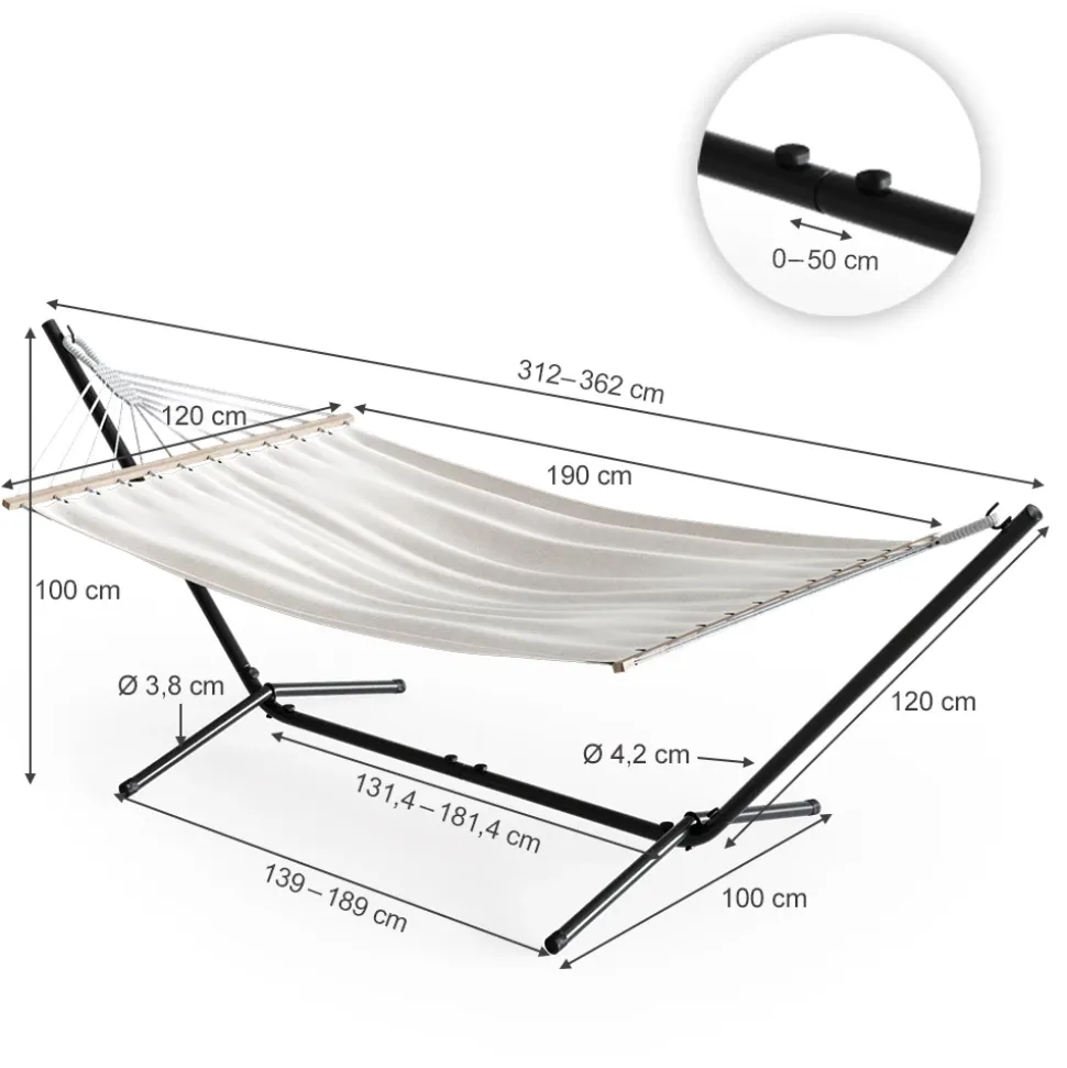 - Das Hängebett unterstützt bis zu 185 kg und lässt sich schnell auf- und abbauen. Das rostbeständige Metall sorgt für eine langlebige Nutzung.