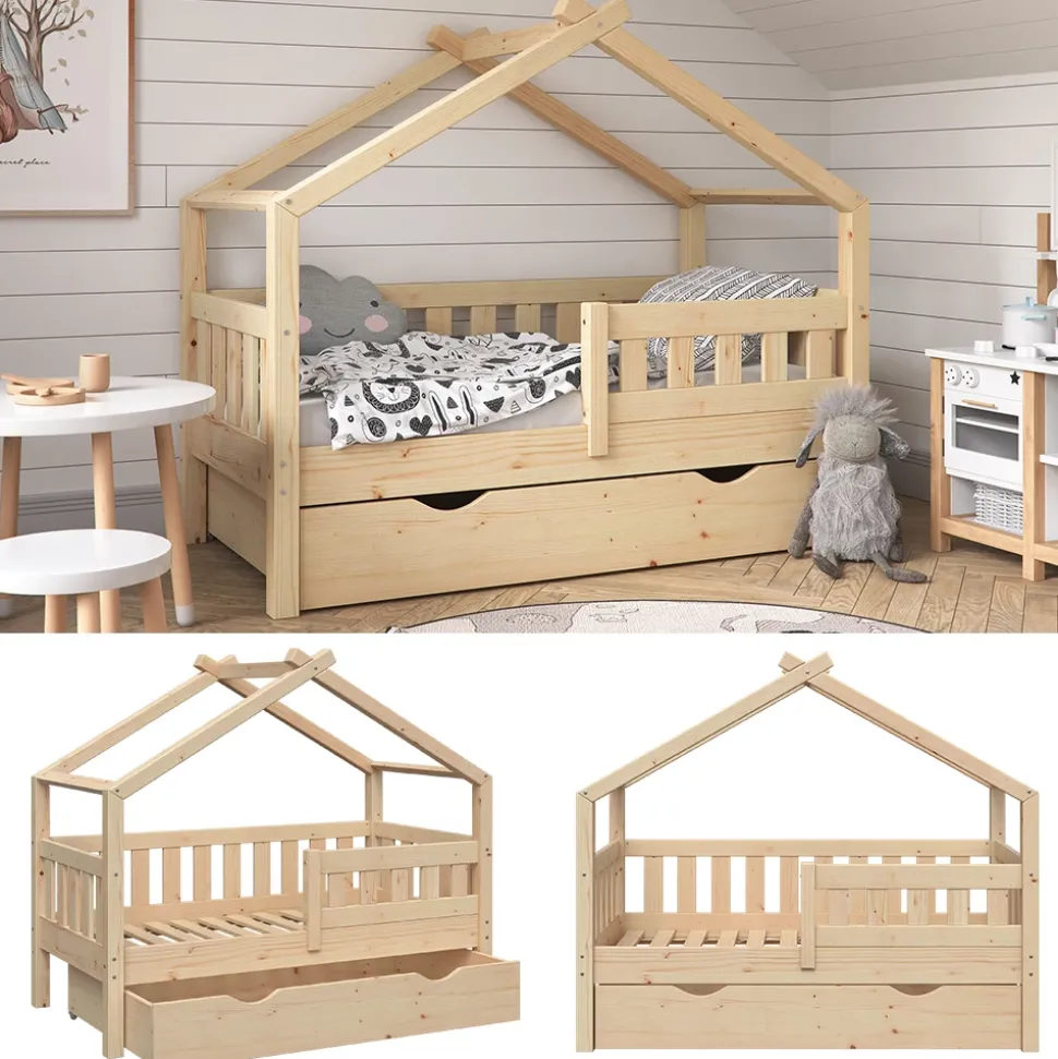 Das Hausbett mit Schublade ist ein wahrer Hingucker und ein Highlight im Kinderzimmer. Es bietet nicht nur einen gemütlichen Schlafplatz, sondern auch einen tollen Spielbereich für Kinder. Mit dem Hausbett kann die Fantasie der Kleinen auf eine einzigartige Weise angeregt werden, indem sie sich in ihrer eigenen kleinen Welt austoben können. Das Bett ist aus Holz gefertigt und überzeugt durch seine hohe Qualität sowie verschiedenen Ausführungen und Veredelungen. Ein Bett, das nicht nur schön aussieht, sondern auch funktional ist und dazu beiträgt, dass Kinder ihre Kreativität entfalten können. Gibt es etwas Schöneres als zu sehen, wie die kleinen Abenteurer in ihrem Hausbett spielen und träumen? Gönnen Sie Ihrem Kind ein Bett, das Geborgenheit und Abenteuer in einem bietet – das Hausbett mit Schublade.