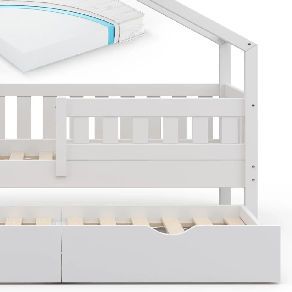 - LIEFERUMFANG: Hausbett, Kinder Matratze, Montageanleitung, Montagematerial,.