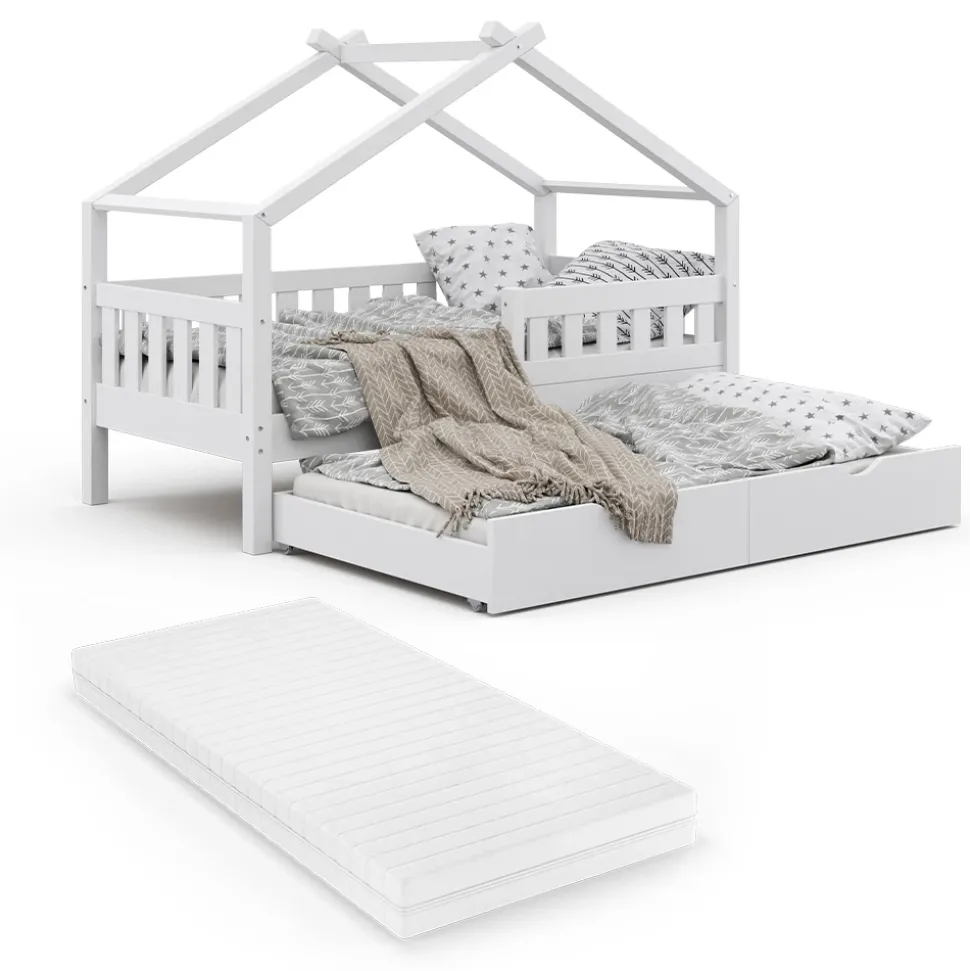 Das Hausbett mit Matratze ist ein absolutes Highlight im Kinderzimmer! Es ist nicht nur ein Bett aus Holz, sondern auch ein Spielbereich, der die Fantasie und Kreativität der Kleinen entfaltet. Das Design ist einfach umwerfend und passt zu jedem Stil. Das Bett ist aus hochwertigem Holz gefertigt und in verschiedenen Ausführungen und Veredelungen erhältlich. Das Gästebett und die Matratze sind für den perfekten Schlafkomfort mit dabei. Geben Sie Ihrem Kind mit diesem Spielbett ein sicheres und gemütliches Zuhause!