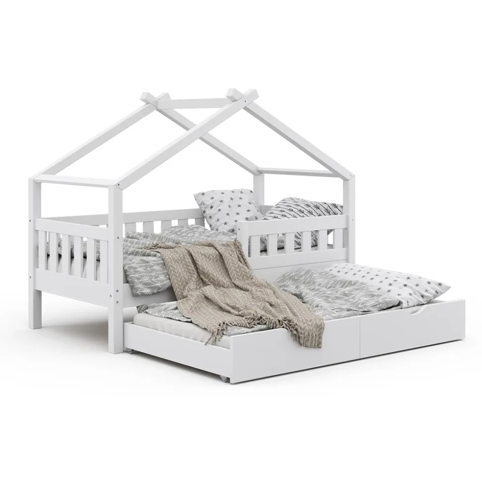 Das Hausbett ist ein absolutes Highlight im Kinderzimmer! Es ist nicht nur ein Bett aus Holz, sondern auch ein Spielbereich, der die Fantasie und Kreativität der Kleinen entfaltet. Das Design ist einfach umwerfend und passt zu jedem Stil. Das Bett ist aus hochwertigem Holz gefertigt und in verschiedenen Ausführungen und Veredelungen erhältlich. Das Gästebett und die Matratze sind für den perfekten Schlafkomfort mit dabei. Geben Sie Ihrem Kind mit diesem Spielbett ein sicheres und gemütliches Zuhause!