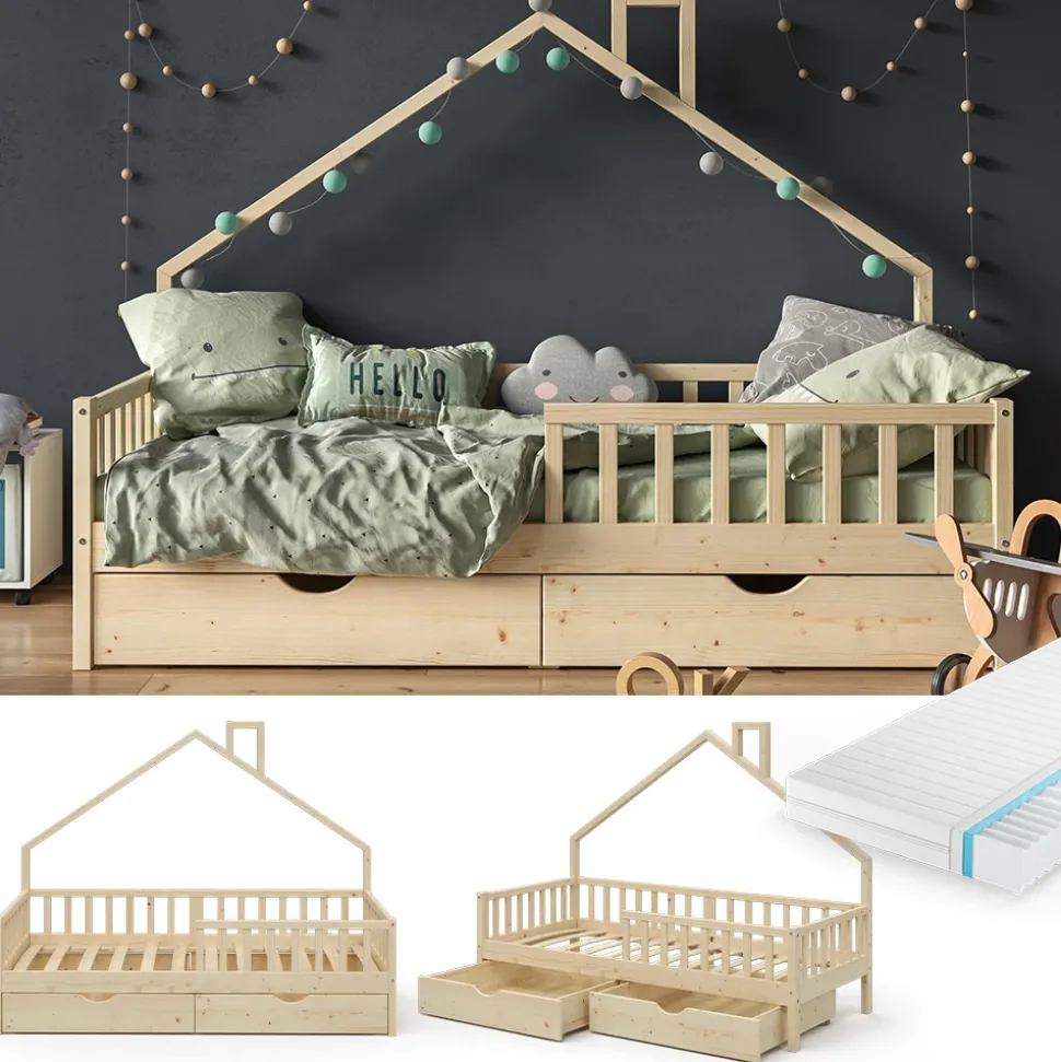 Das Hausbett Noemi ist das perfekte Bett für Kinderzimmer! Dieses Bett aus Holz bietet nicht nur einen gemütlichen Schlafplatz, sondern auch einen Spielbereich, der die Fantasie und Kreativität der Kinder beflügelt. Mit dem Hausbett Noemi können die Kleinen ihre eigene kleine Welt erschaffen und tolle Abenteuer erleben. Das Bett ist aus hochwertigen Materialien gefertigt und in verschiedenen Ausführungen erhältlich. Zusätzliche Veredelungen sorgen für ein einzigartiges Design und machen das Bett zu einem Highlight im Kinderzimmer. Mit den zwei Schubladen bietet das Hausbett Noemi auch noch praktischen Stauraum. Gönnen Sie Ihrem Kind das beste Bett, das es sich wünschen kann!