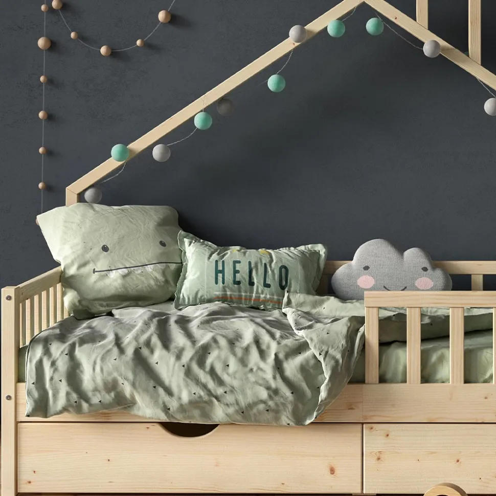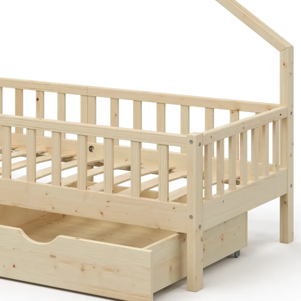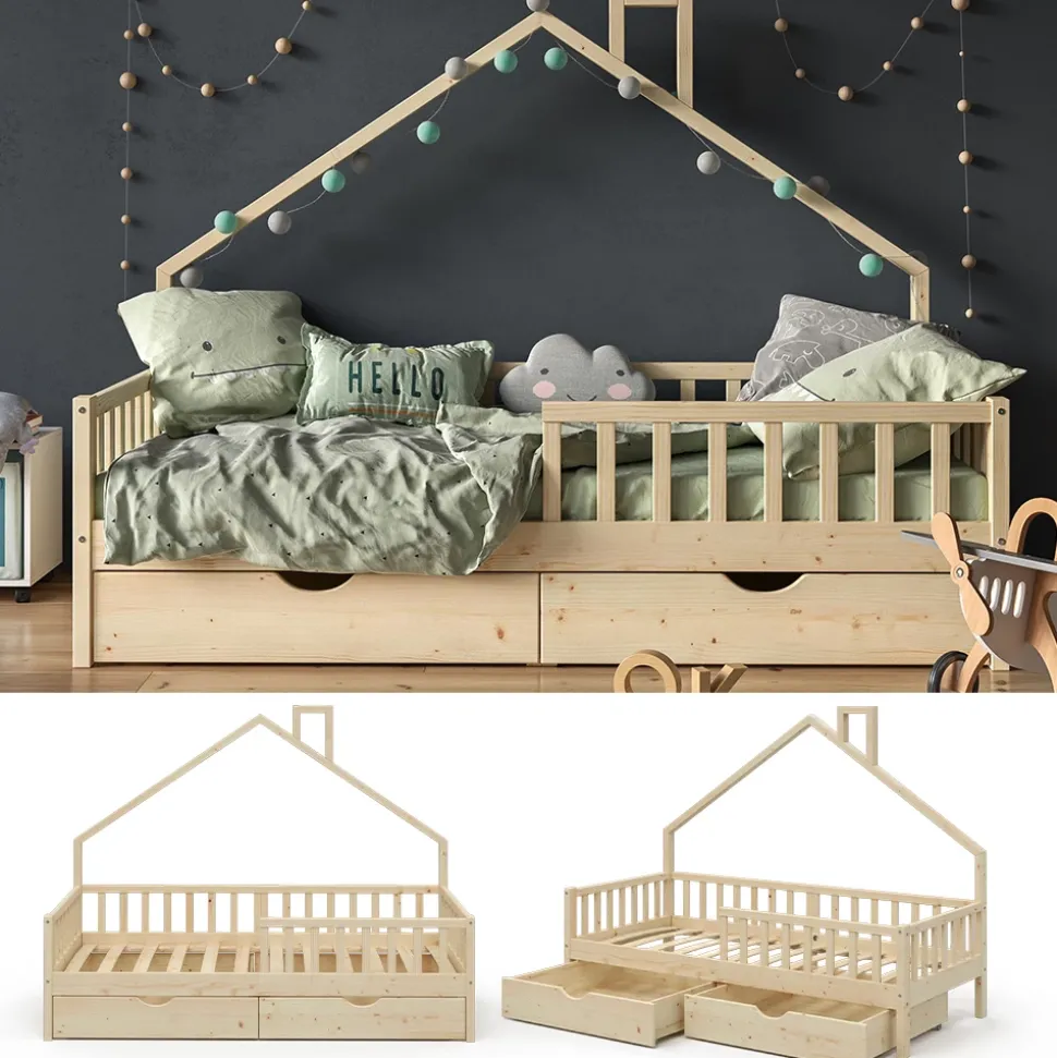 Das Hausbett Noemi mit 2 Schubladen ist das Highlight im Kinderzimmer und bietet den Kleinen ein einzigartiges Bett- und Spiel-Erlebnis. Das Holzbett für Kinderzimmer ist nicht nur ein gemütlicher Schlafplatz, sondern auch ein Ort, an dem sich Kinder kreativ austoben können und ihre Fantasie entfalten dürfen. Somit wird das Kinderzimmer zum Abenteuerspielplatz und die Kleinen können sich voll und ganz entfalten. Das Hausbett ist in hoher Qualität erhältlich und kann individuell veredelt werden. Holen Sie sich das Noemi Hausbett und schenken Sie Ihrem Kind ein unvergessliches spielerisches Erlebnis.