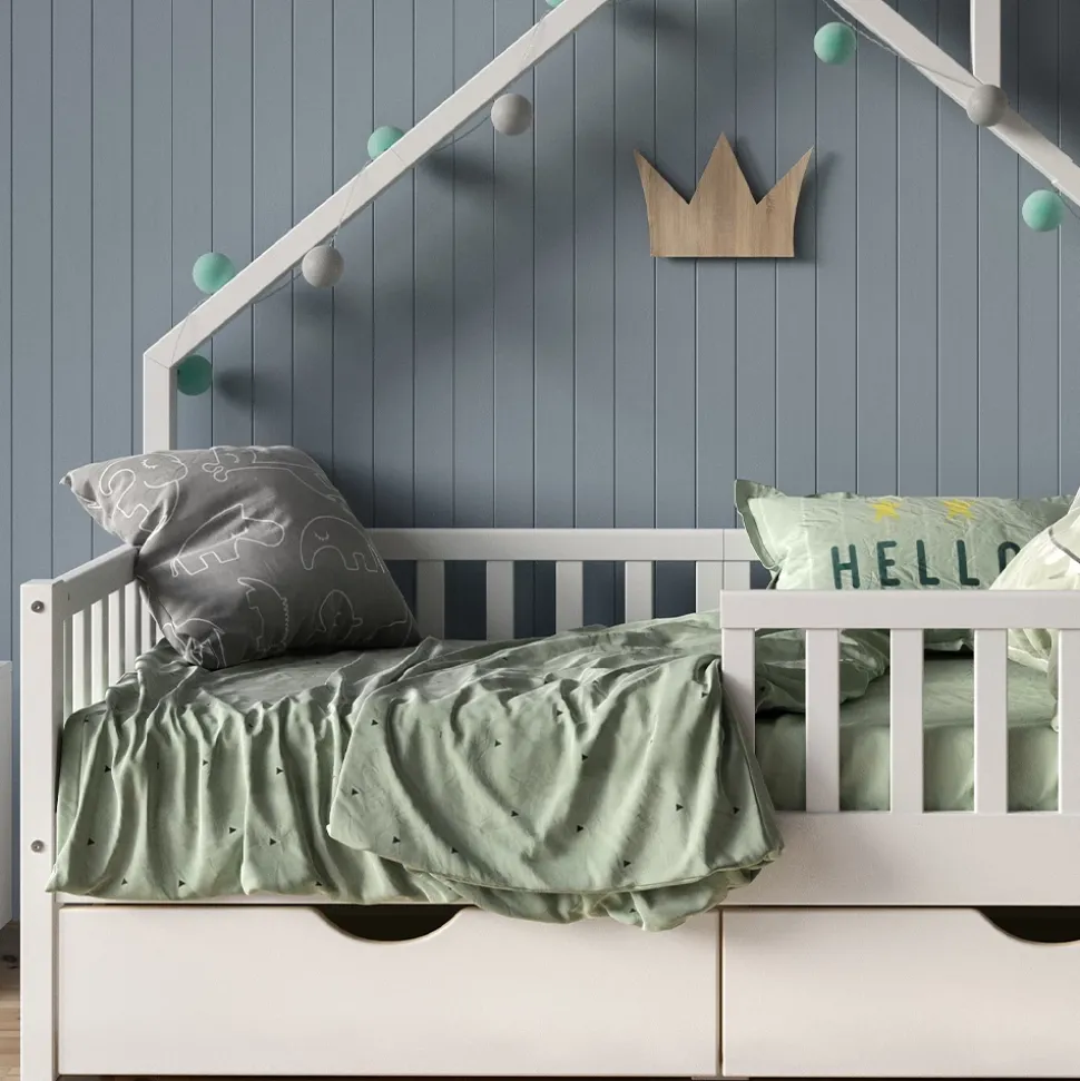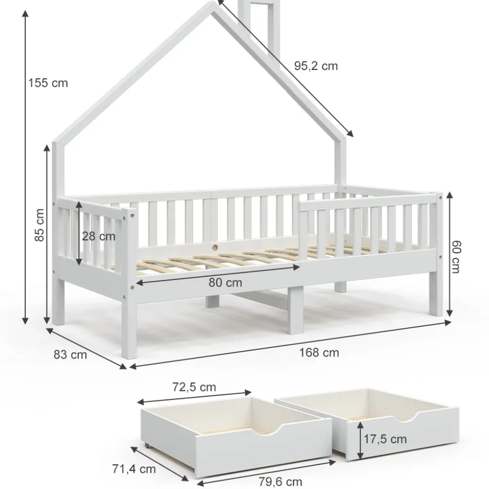 - LIEFERUMFANG: Hausbett, Montageanleitung, Montagematerial, 2x Schubladen. (Dekoration nicht enthalten)