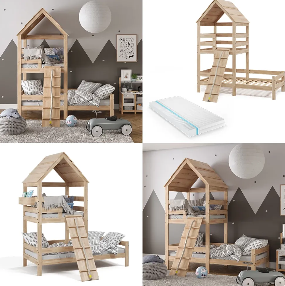 Das Teddy Hausbett mit Matratze ist nicht nur ein Kinderbett, sondern auch ein Spielbereich und ein Ort für kindliche Kreativität. Aus hochwertigem Holz gefertigt, ist es ein Highlight in jedem Kinderzimmer. Ob als Kuschelhöhle oder als Piratenschiff, das Hausbett gibt Kindern die Möglichkeit, ihre Fantasie und Kreativität zu entfalten und sich in ihre Traumwelten zu begeben. Es ist ein Ort des Geborgenheitsgefühls und der Freude zugleich. Außerdem ist das Bett in verschiedenen Ausführungen erhältlich und kann zusätzlich veredelt werden. Das Teddy Hausbett ist ein wahr gewordener Kindertraum und ein Must-Have für jedes Kinderzimmer!