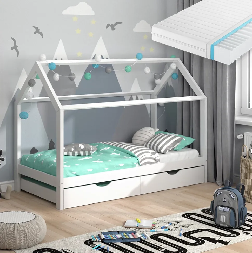 - LIEFERUMFANG: Hausbett, Montageanleitung, Montagematerial, Matratze