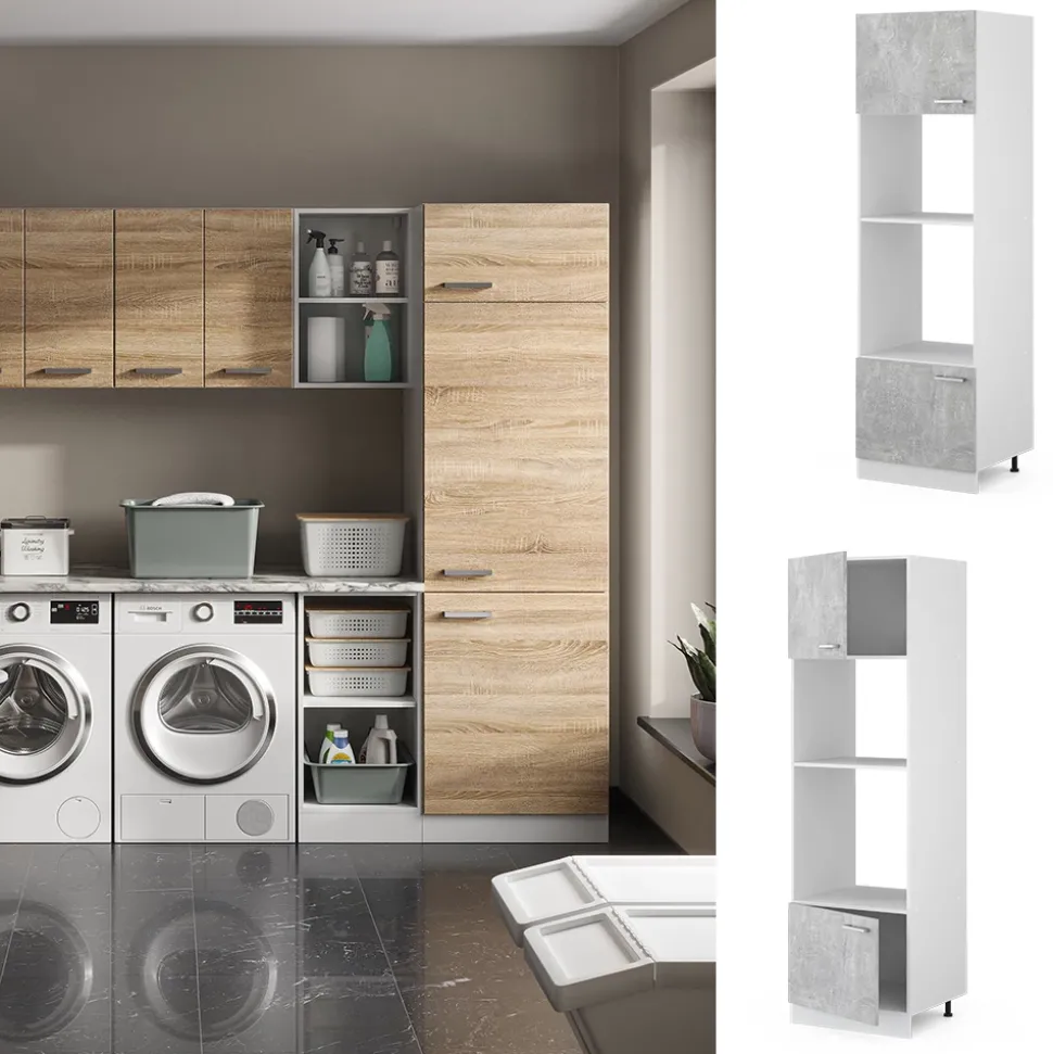 - MAßE: Der Vorratsschrank hat eine Breite von 60 cm, eine Höhe von 207 cm und eine Tiefe von 57,2 cm. Alle detaillierten Größen sind auf den Fotos angegeben.