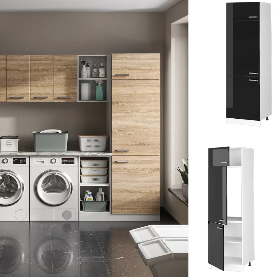 - MAßE: Der Vorratsschrank hat eine Breite von 60 cm, eine Höhe von 207 cm und eine Tiefe von 57,2 cm. Alle detaillierten Größen sind auf den Fotos angegeben.