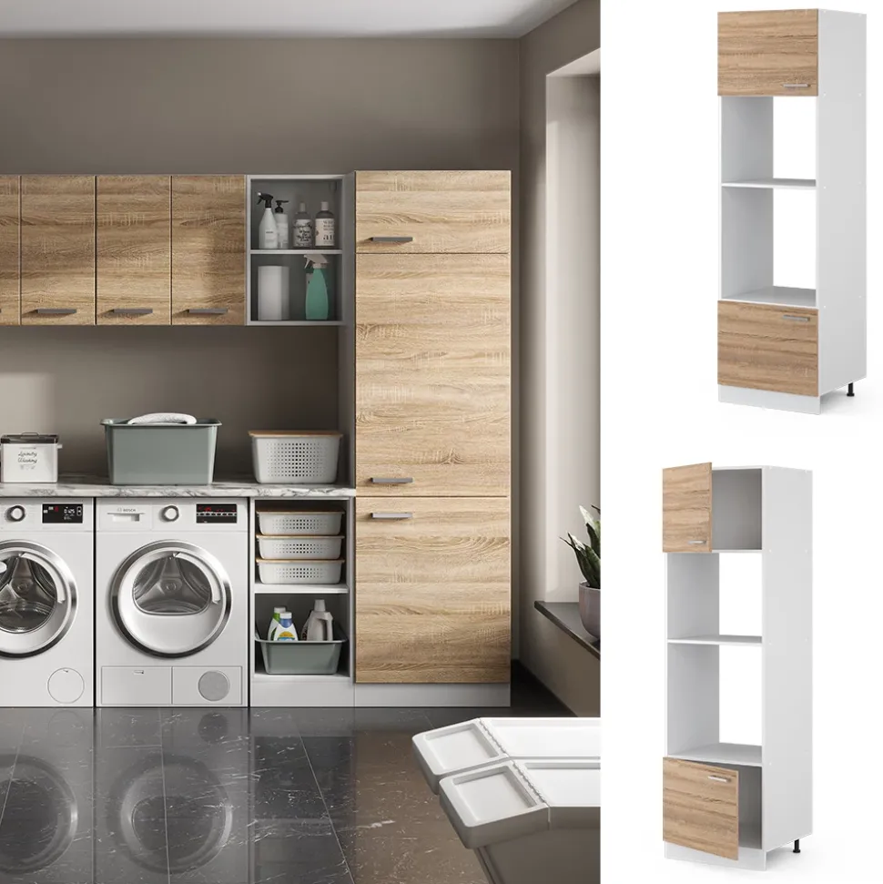 - MAßE: Der Vorratsschrank hat eine Breite von 60 cm, eine Höhe von 207 cm und eine Tiefe von 57,2 cm. Alle detaillierten Größen sind auf den Fotos angegeben.