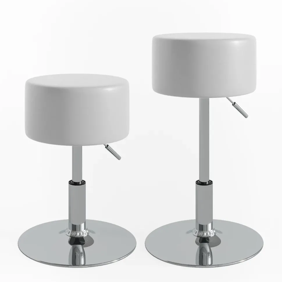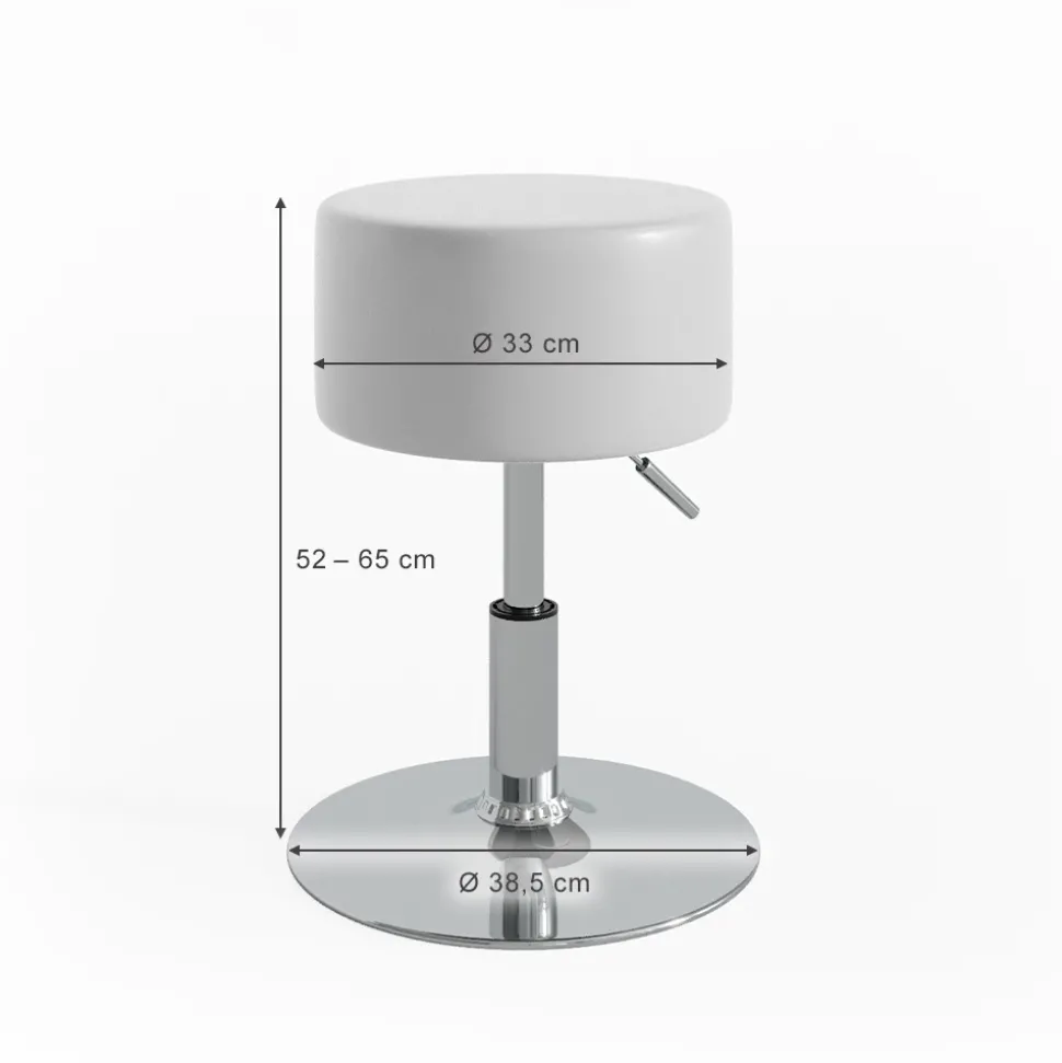 - Das Produkt ist ein höhenverstellbarer Kosmetiktisch-Hocker mit einer robusten Konstruktion und einem Sitz aus Kunstleder.