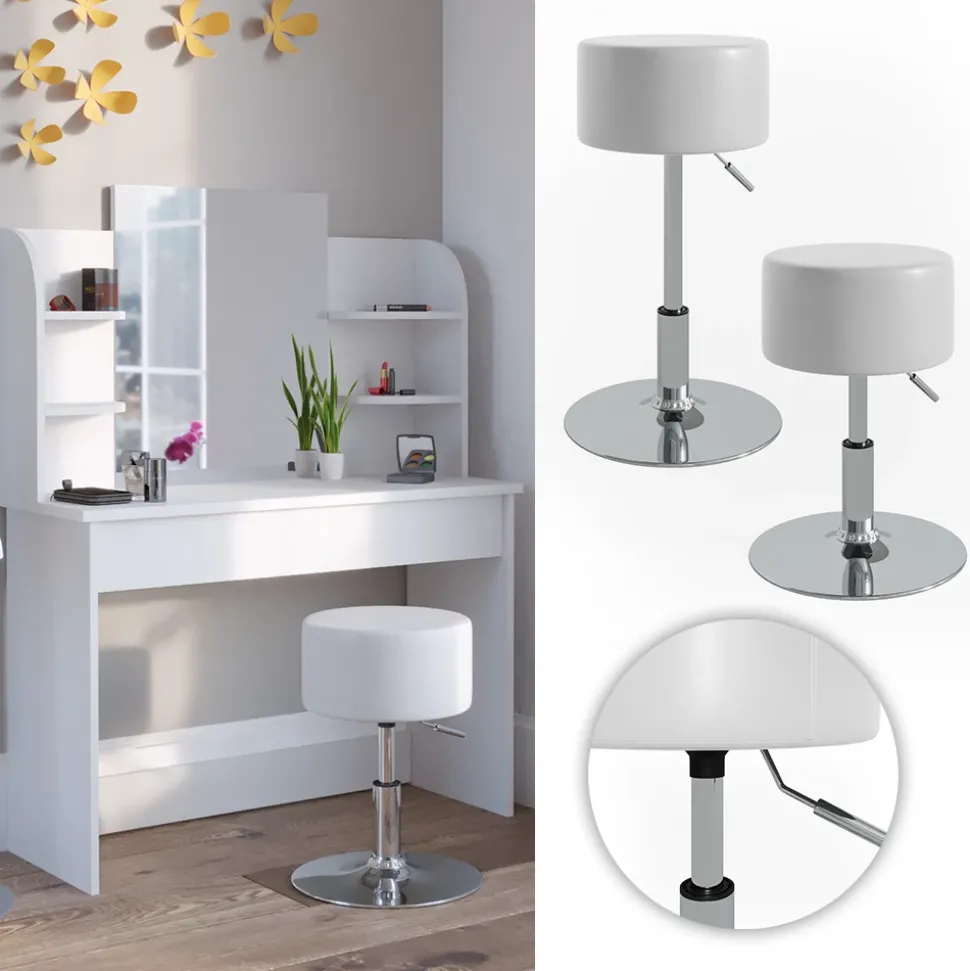 Der Hocker ist der perfekte Begleiter für den Schminktisch. Er ist höhenverstellbar und somit für jede Person geeignet. Das Kunstleder ist angenehm weich und die robuste Konstruktion sorgt für eine lange Lebensdauer. Der klassische Stil verleiht dem Hocker eine elegante Note.