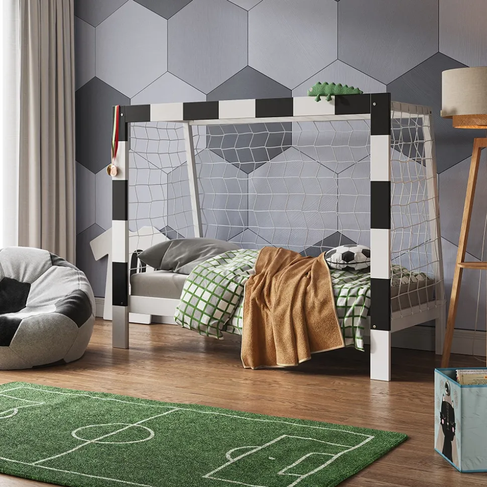 Das Kinderbett „Fußballtor“ begeistert mit seinem sportlichen Design, ideal für das Jugendzimmer.