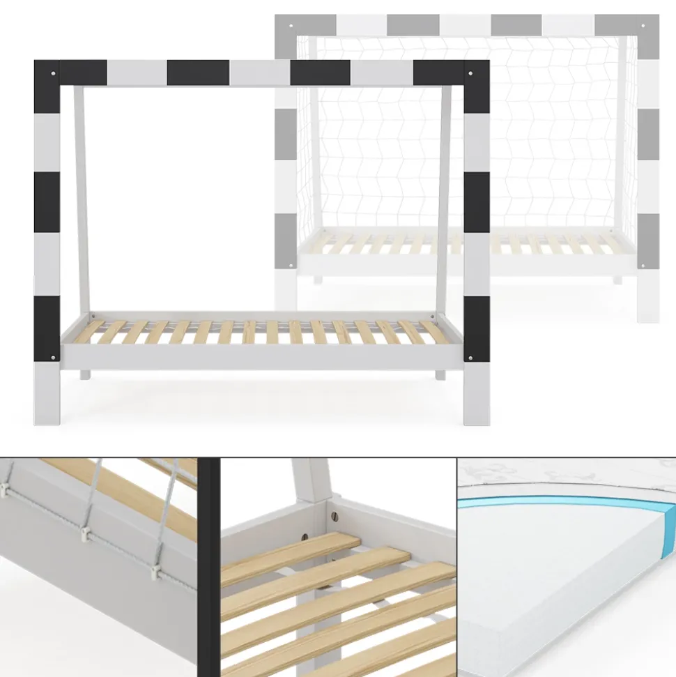 - Das Holzbett Fußballtor ist eine gute Entscheidung für jeden kleinen Fußballfan, der nicht nur stilvoll, sondern auch unterhaltsam schlafen möchte.