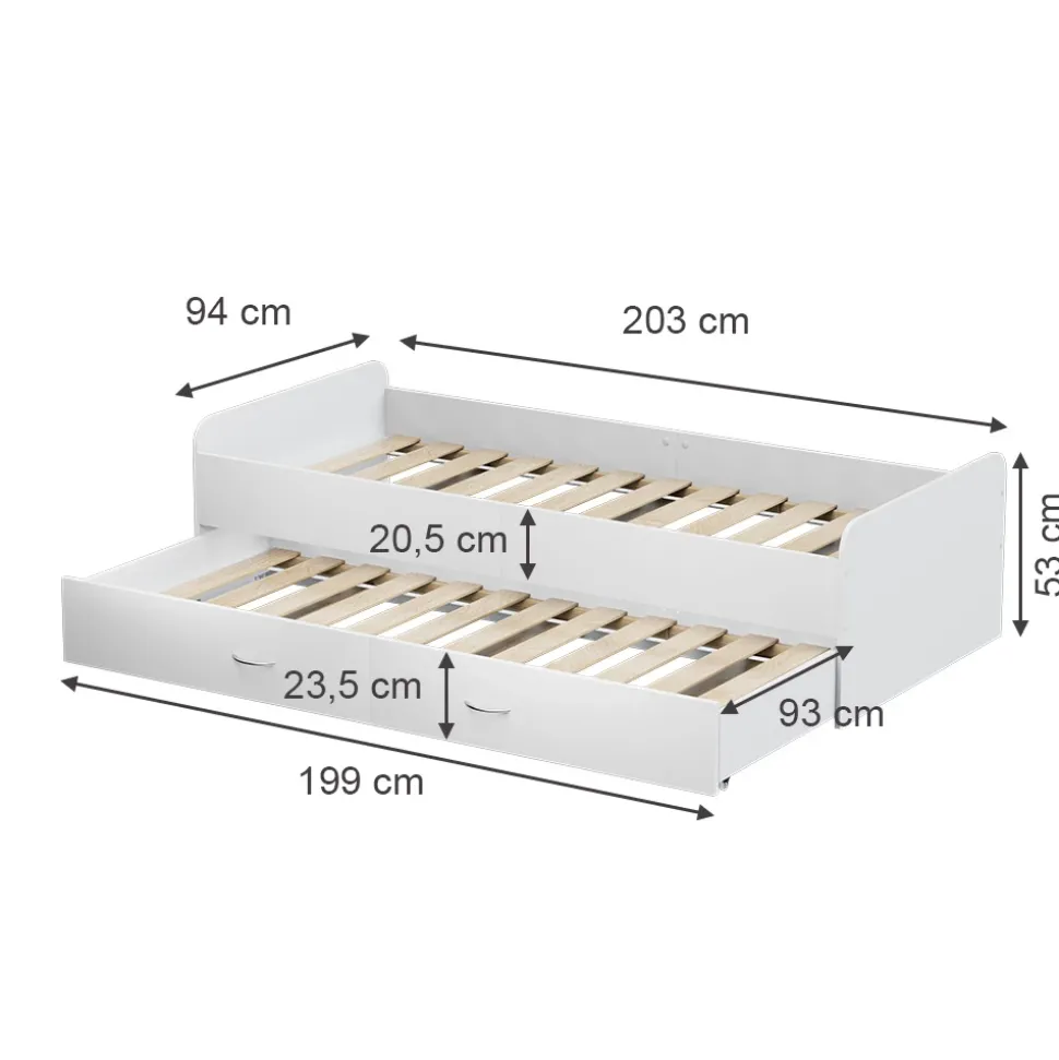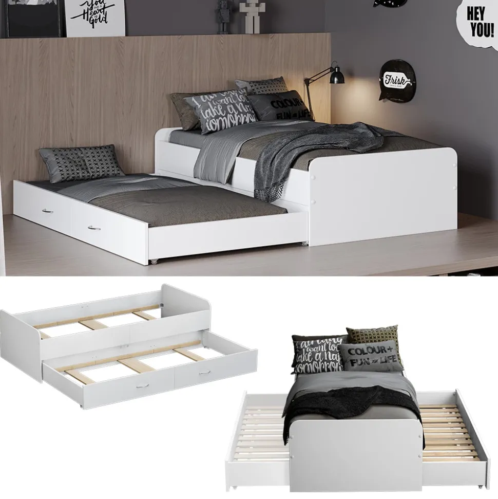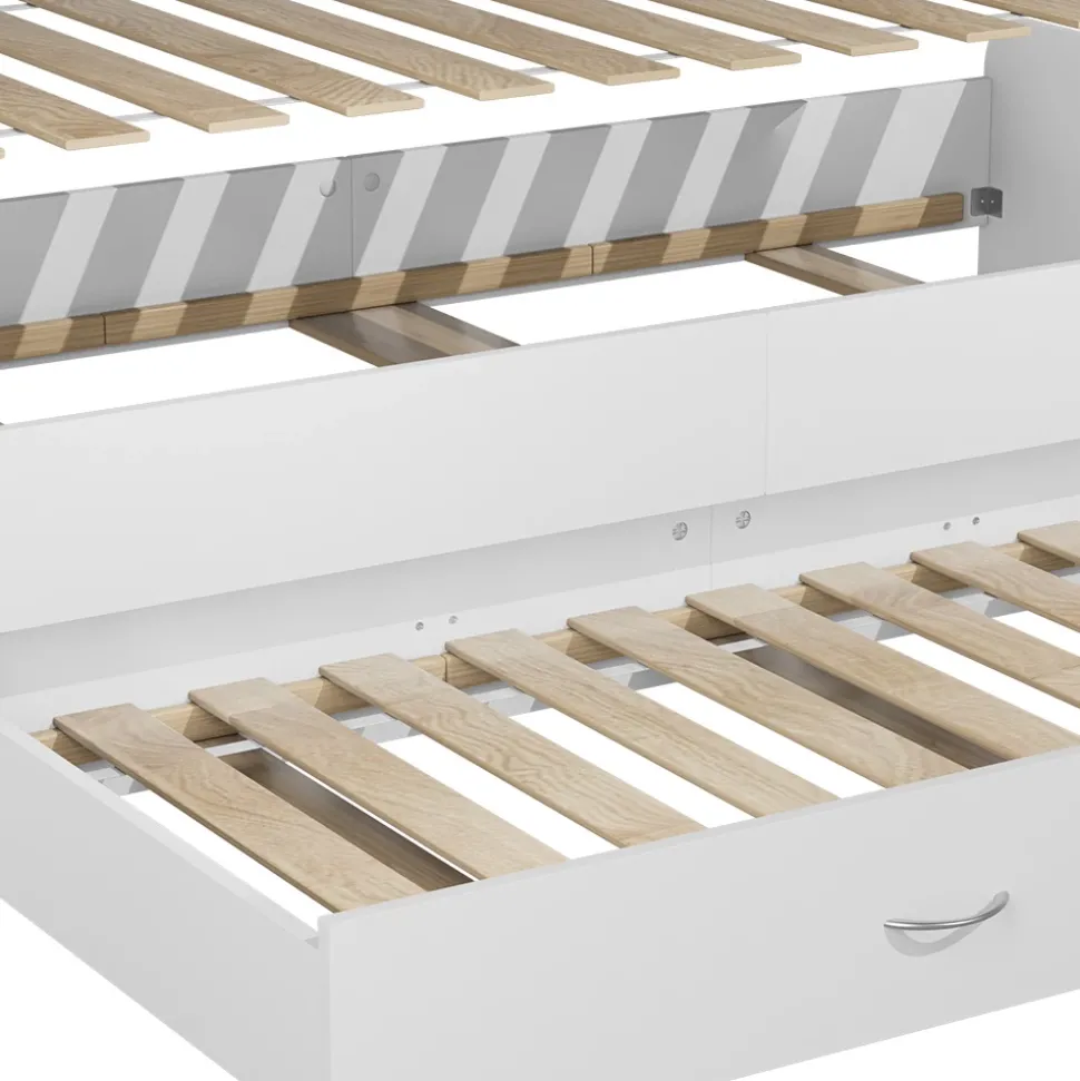 Das Bett wird komplett mit einem passenden Lattenrost geliefert, um Ihnen einen optimalen Schlafkomfort zu bieten. Das praktische Ausziehbett wird ebenfalls mit einem Lattenrost geliefert und bietet eine komfortable Schlafmöglichkeit für Ihre Gäste. Die melaminharzbeschichtete Oberfläche des Kojenbettes ist besonders pflegeleicht und ermöglicht eine einfache Reinigung und langanhaltende Schönheit. Dank dem mitgelieferten Montagematerial und der detaillierten Anleitung ist die Montage schnell und unkompliziert durchführbar.