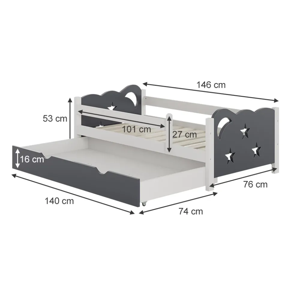 - MAßE: Das Jugendbett ist passend für eine Matratze von 70×140 cm und hat eine Höhe von 53 cm. Alle detaillierten Größen sind auf den Fotos angegeben.