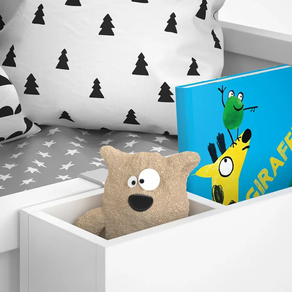 - LIEFERUMFANG: Kinderbettregal, Montageanleitung, Montagematerial.