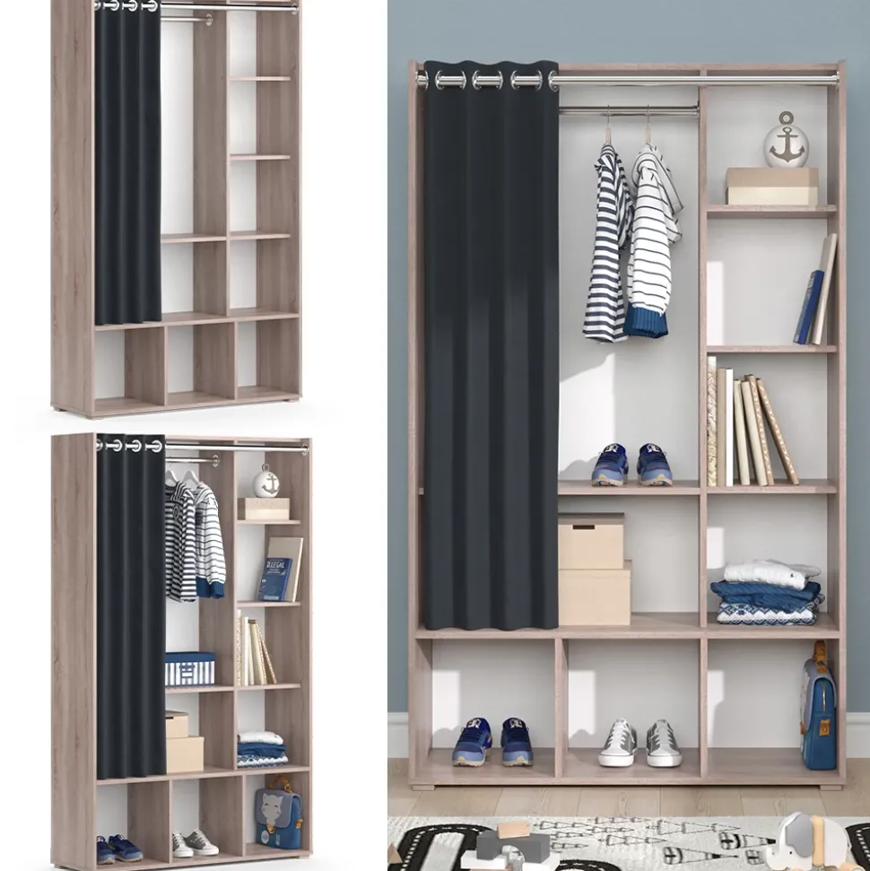 - MAßE: Der Kleiderschrank für Kinder hat folgende Abmessungen: Breite: 105,8 cm, Höhe: 178,1 cm, Tiefe: 38 cm. Alle detaillierten Größen sind auf den Fotos angegeben.