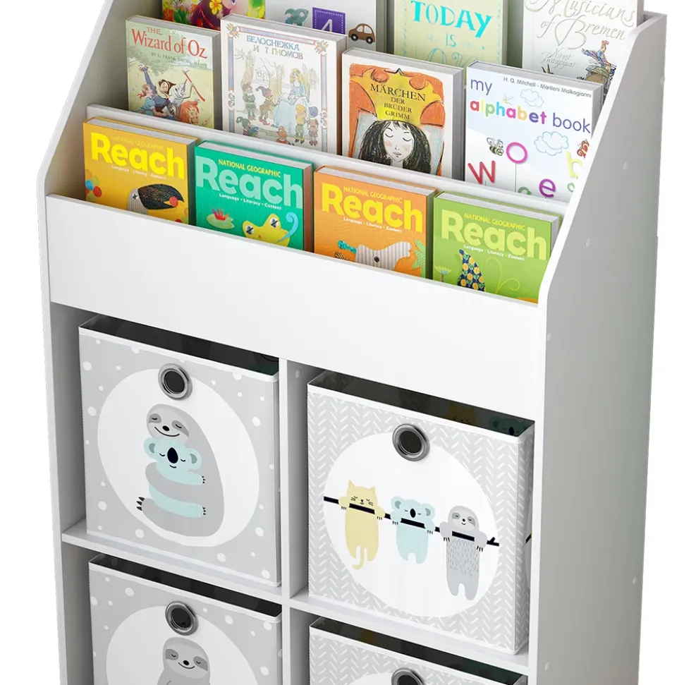 - Organisieren Sie das Spielzeug Ihres Kindes mühelos mit unserem Spielzeugregal. Die 3 Ablagen bieten Platz für Spielzeug, während vier große Fächer perfekt für Faltboxen sind.