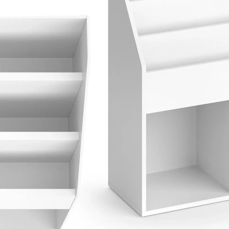 - Das Spielzeugregal für Faltboxen bietet bequeme Aufbewahrungsmöglichkeiten für Bücher und Spielzeug dank drei offener Ablagen und zwei Box-Fächern.