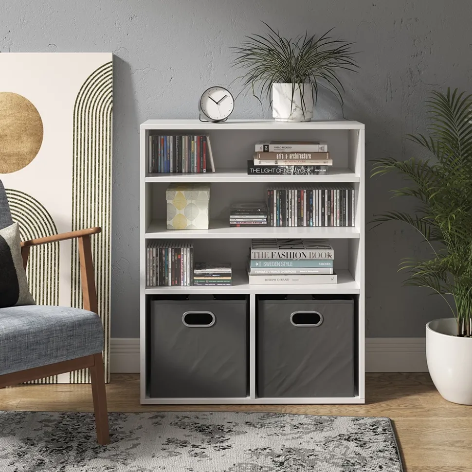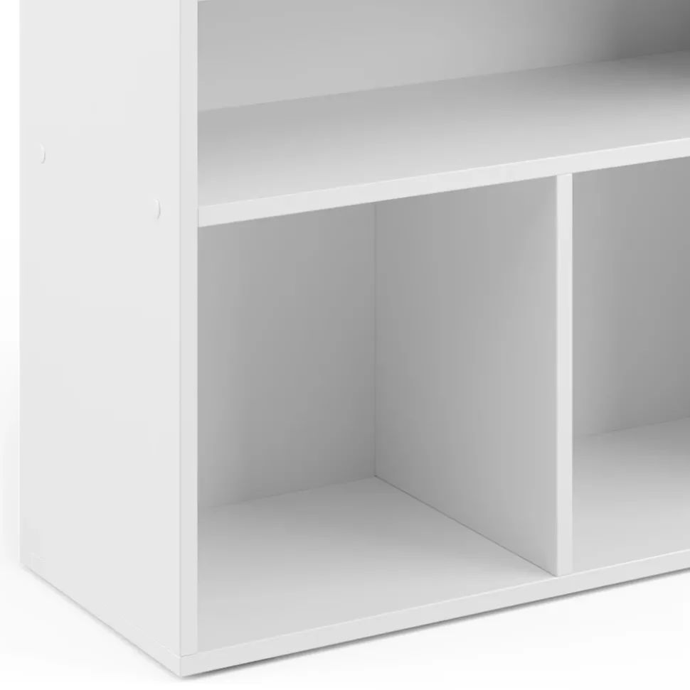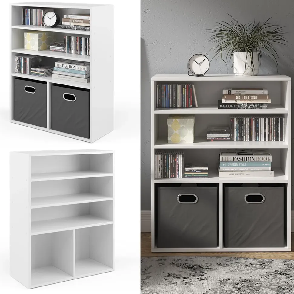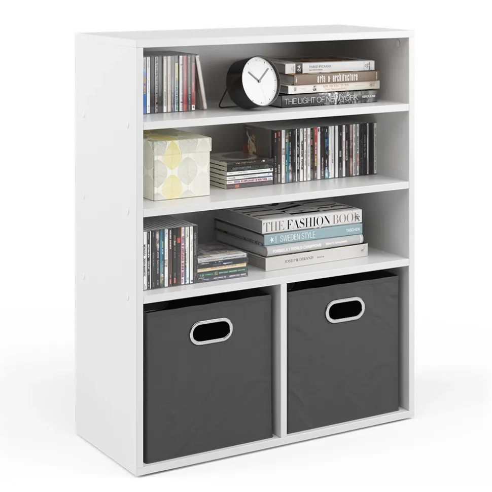 - Das Spielzeugregal für Faltboxen bietet praktische Aufbewahrungsmöglichkeiten für Bücher und Spielzeug mit 3 Ablagen und 2 Boxenfächern.