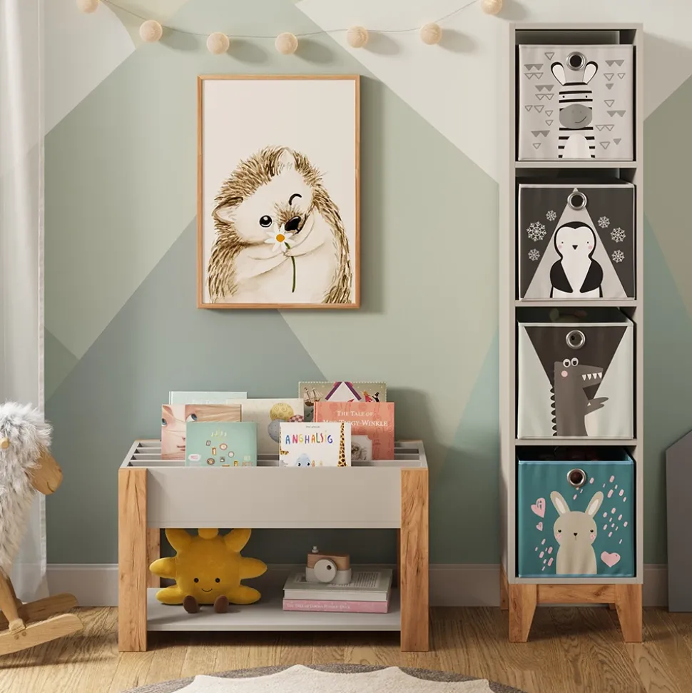 - Gestalten Sie diesem Bilderbuchregal ein kreatives Umfeld, das zum Spielen und Lernen einlädt. In verschiedenen Farben erhältlich, fügt es sich harmonisch in jedes Kinderzimmer ein.