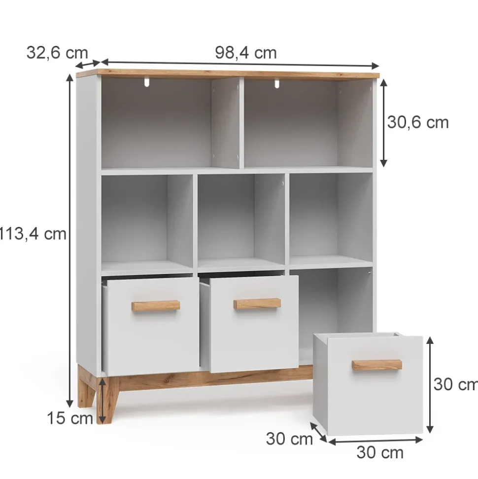 Entdecken Sie das Kinderregal Malia – der perfekte Begleiter für jedes Kinderzimmer! Mit acht großzügigen Fächern bietet das Regal ausreichend Platz für Bücher, Spielzeuge und all die kleinen Schätze, die Kinder lieben. Die drei praktischen Holzboxen helfen dabei, Ordnung zu schaffen und das Aufräumen spielerisch zu gestalten. Stellen Sie sich vor, wie Ihr Kind voller Freude in die Märchenwelt eintaucht oder mit Freunden neue Abenteuer im Spielzimmer erlebt. Das Malia-Regal fördert nicht nur die Kreativität, sondern auch das Verantwortungsbewusstsein – ein echter Gewinn für die gesamte Familie! Kombinieren Sie es mühelos mit anderen Möbeln der Malia-Serie und schaffen Sie eine harmonische Umgebung.