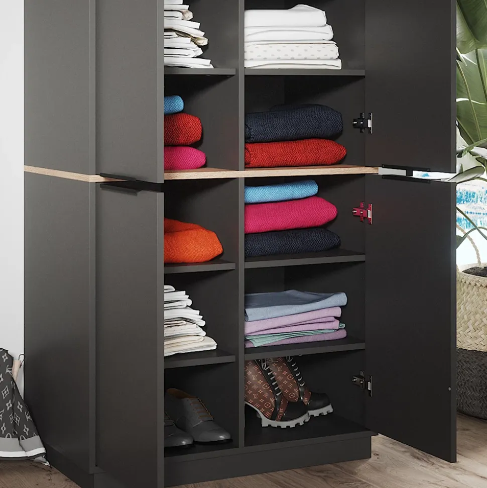 - Entdecken Sie den Vicco Schrank Betti – ein 4-türiger Schlafzimmerschrank in Anthrazit-Sonoma. Perfekt für Stauraum, Garderobe und als stilvolle Einrichtung im Schlafzimmer.