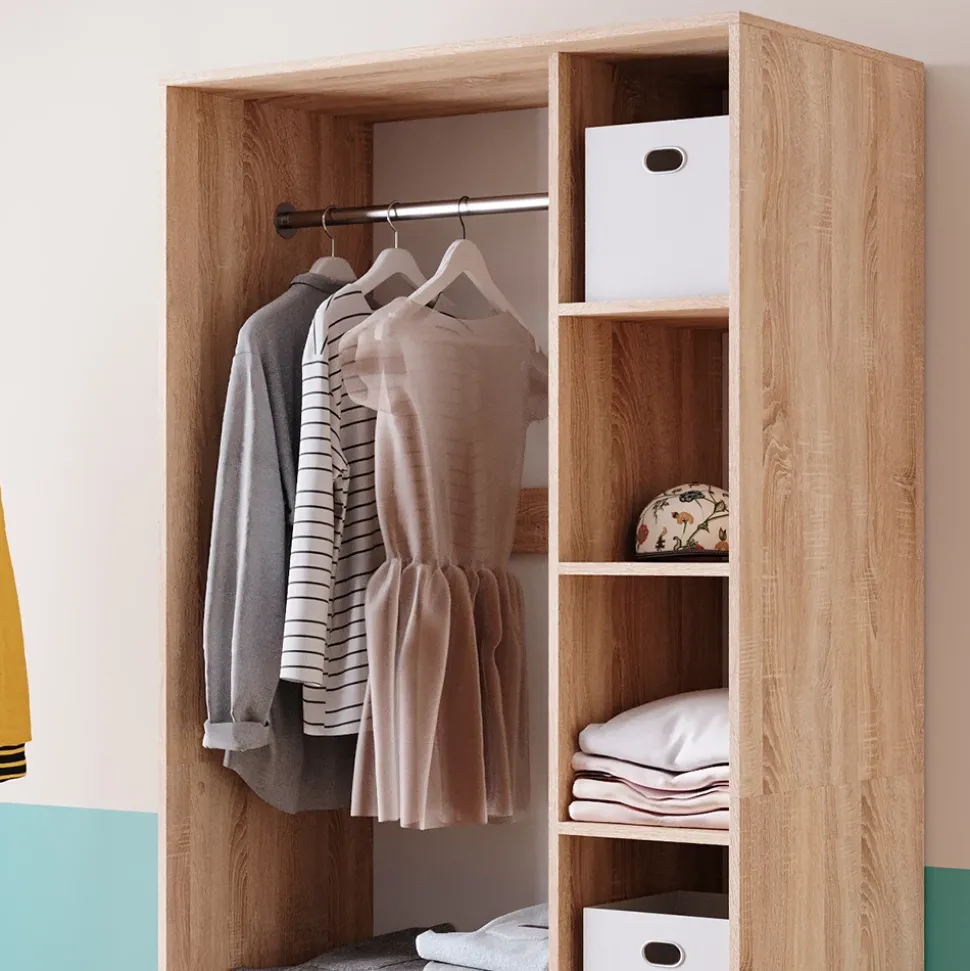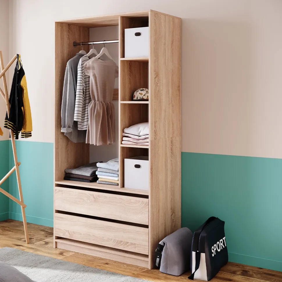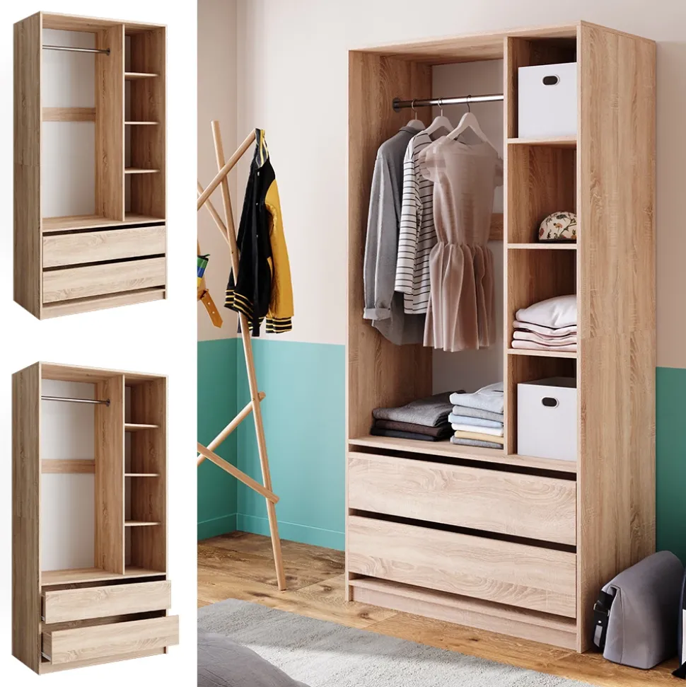 - Der Kleiderschrank bietet dank seiner 2 Schubladen und dem offenen Design viel Stauraum und eignet sich ideal zur Aufbewahrung verschiedener Gegenstände.