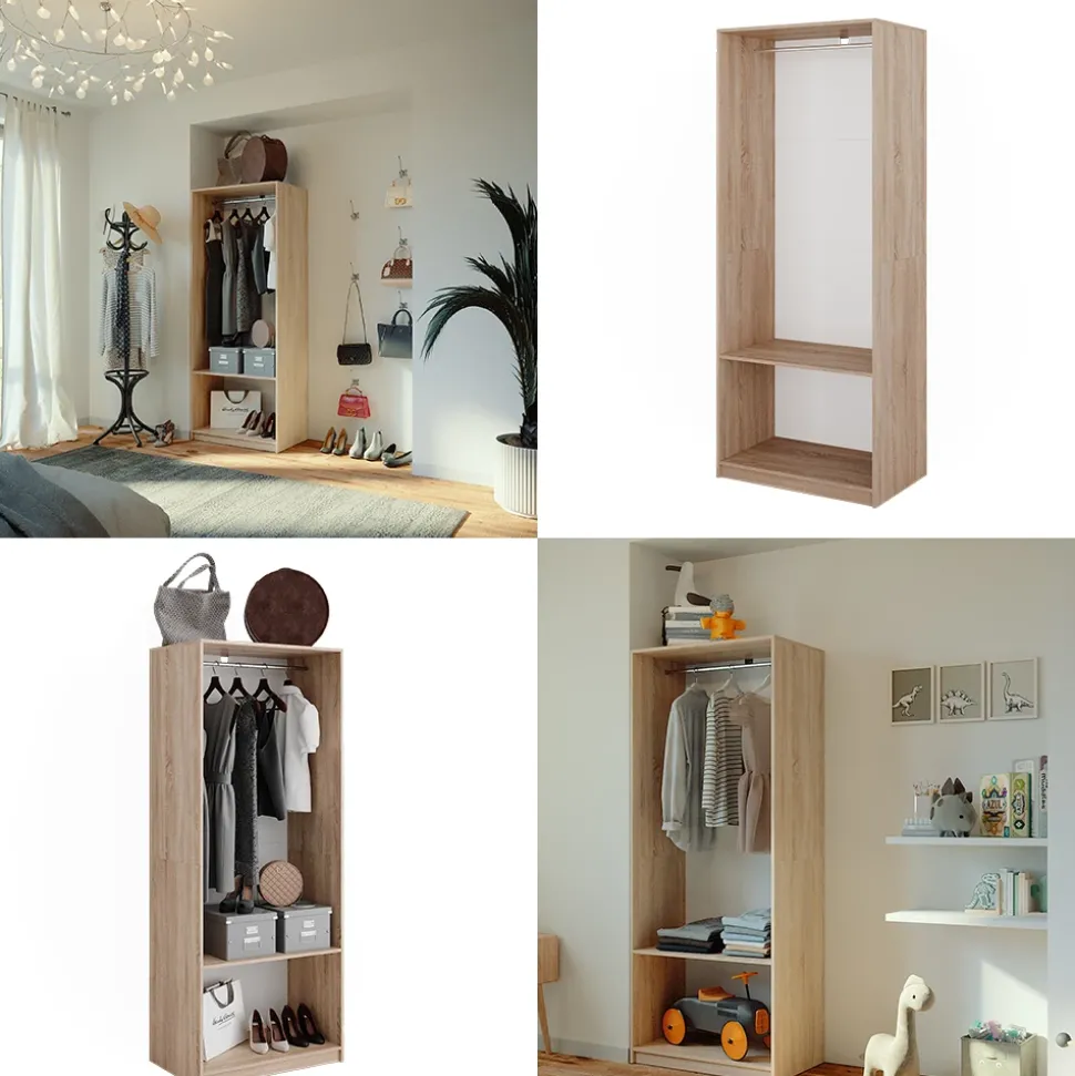 Mit dem Kleiderschrank Elmo wird Ihr Zuhause noch stilvoller und vielseitiger! Dieser Mehrzweckschrank kann als Garderobenschrank oder sogar als Wohnzimmerschrank verwendet werden und bietet somit genügend Staumöglichkeiten für alle Ihre Habseligkeiten. Die Kleiderstange aus Metall ermöglicht eine ordentliche Aufbewahrung Ihrer Kleidungsstücke, während das offene Fach unten Platz für Schuhe oder Kisten bietet. Das moderne Design des Kleiderschranks Elmo lässt sich perfekt mit anderen Möbeln kombinieren und verleiht Ihrem Zuhause eine elegante Note. Mit diesem Schrank haben Sie nicht nur eine funktionale Aufbewahrungsmöglichkeit, sondern auch ein stilvolles Einrichtungsstück mit Charakter. Bringen Sie Ihr Zuhause auf das nächste Level und gönnen Sie sich den Kleiderschrank Elmo!