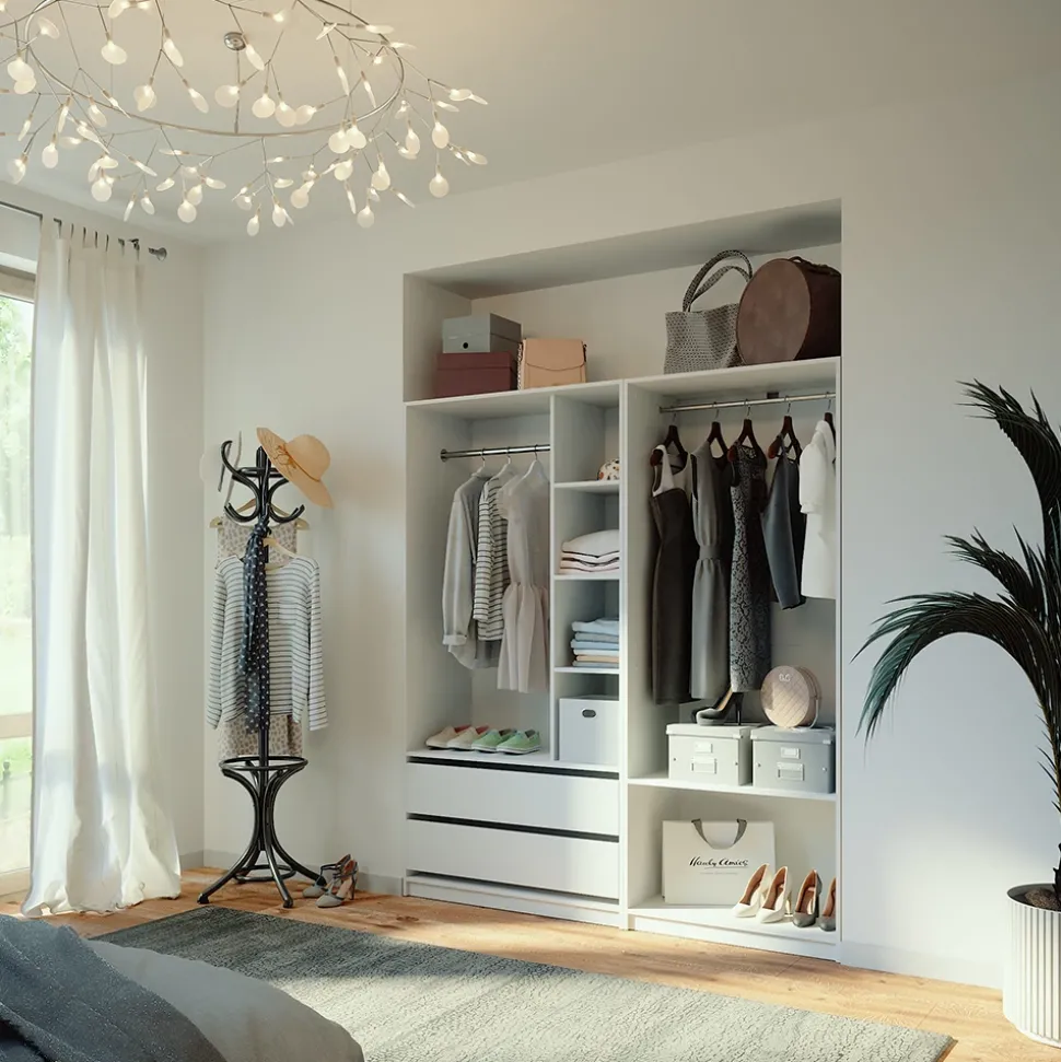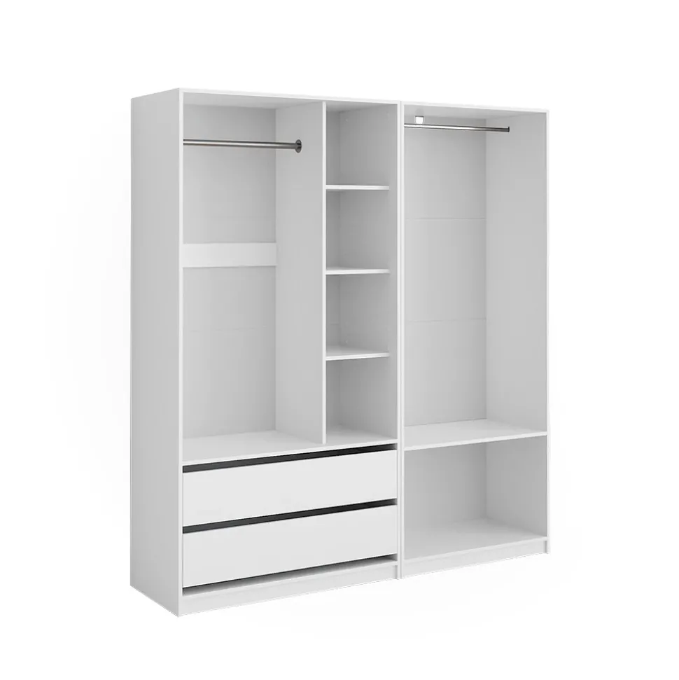 Elmo ist das perfekte Kleiderschrank-Set für jeden Raum. Mit dessen vielseitigen Einsatzmöglichkeiten als Mehrzweckschrank- oder Garderobenschrank-Set ist es nicht nur im Schlafzimmer einsetzbar, sondern auch als Wohnzimmerschrank-Kombi. Das offene Design mit Schubladen macht Elmo zu einem echten Hingucker. Es kann zudem problemlos mit anderen Möbelstücken kombiniert werden und passt sich somit jedem Einrichtungsstil an. Gönnen Sie sich jetzt den Luxus vom Elmo Möbel-Set und genießen Sie Ordnung und mehr Platz in Ihrem Zuhause.