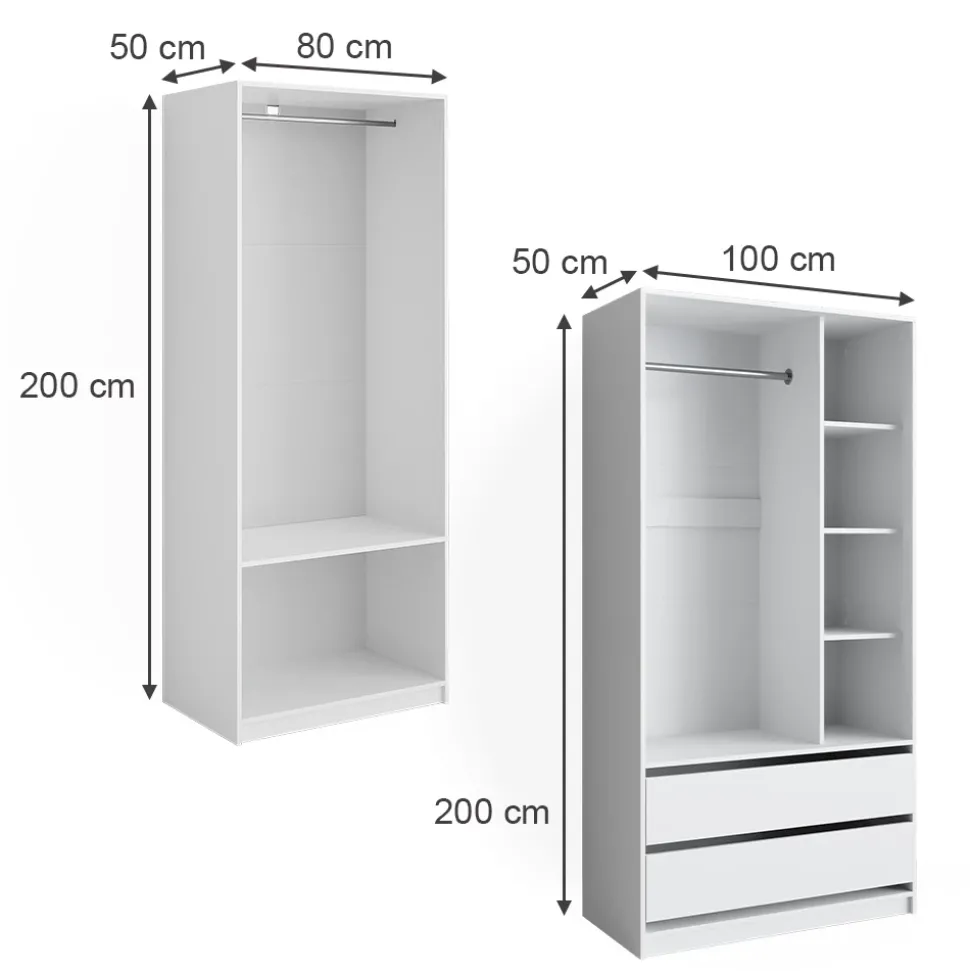 - MAßE: Das Mehrzweckschrank-Set hat eine Tiefe von 50 cm, eine Breite von 80 / 100 cm und eine Höhe von 200 cm. Alle detaillierten Größen sind auf den Fotos angegeben.