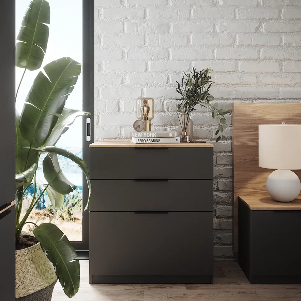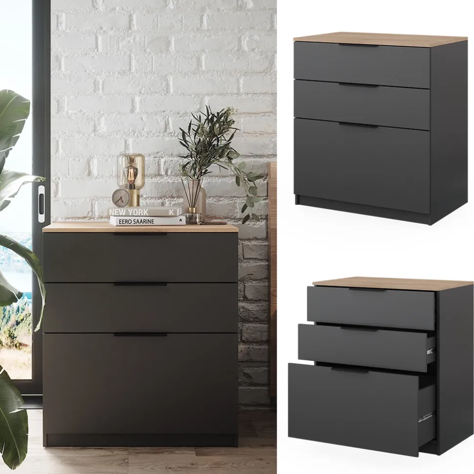 - Genießen Sie üppigen Stauraum durch 3 geräumige Schubfächer. Die Schubladenkommode vereint Eleganz und Funktion als ideales Sideboard oder Schlafzimmerkommode.
