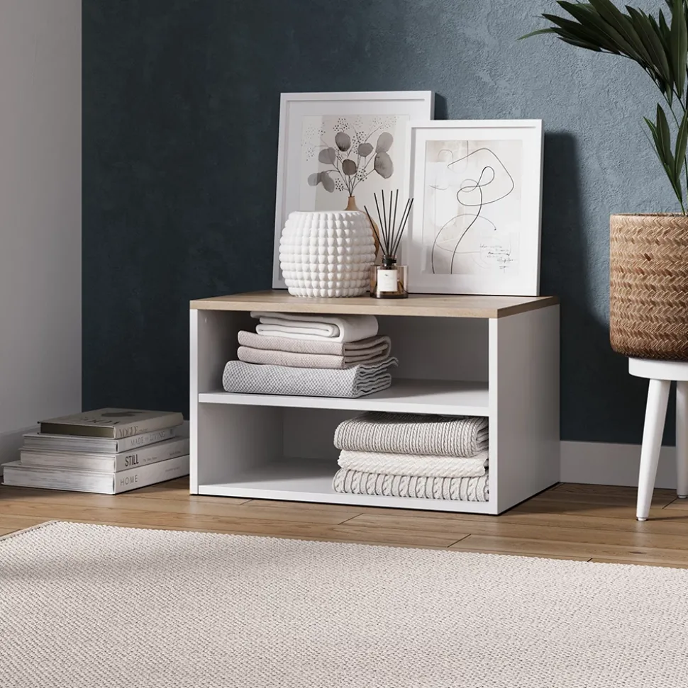 - Das Regal bietet praktische Aufbewahrungsmöglichkeiten und schützt vor Staub und neugierigen Blicken. Dank der Türen wirkt es ordentlich und aufgeräumt in jedem Raum.