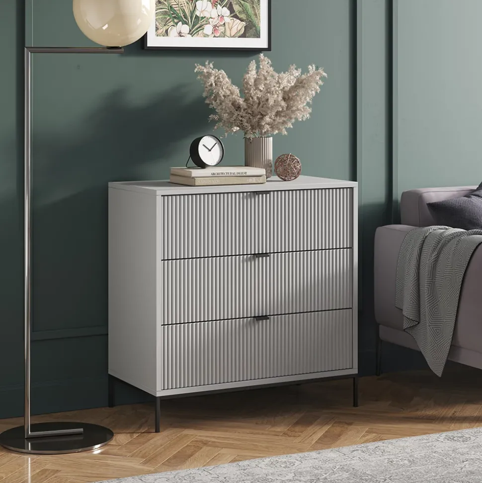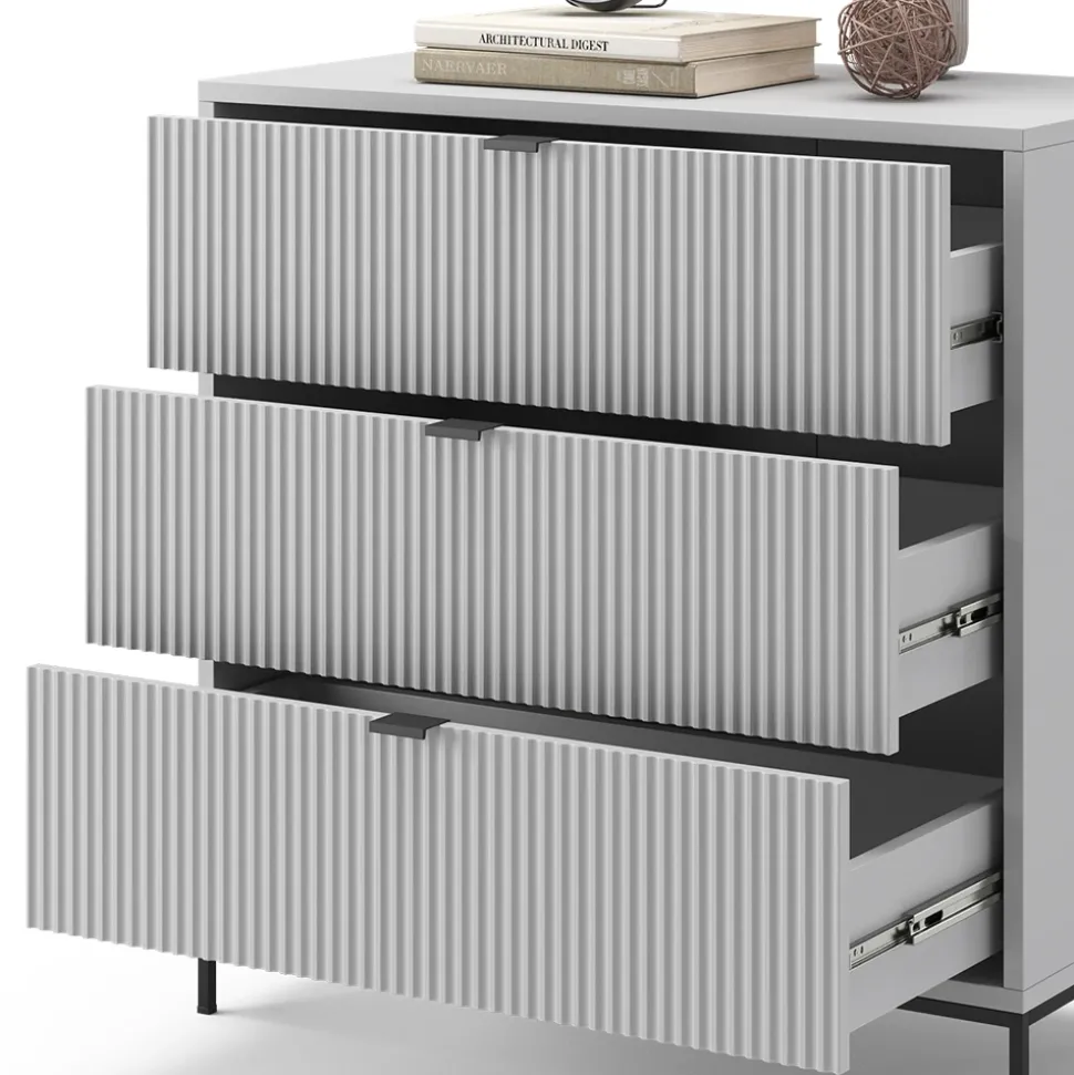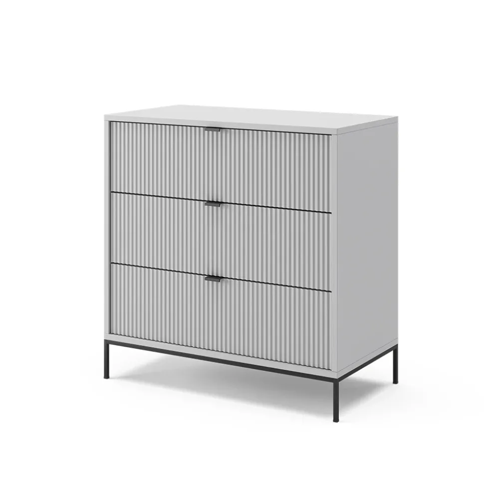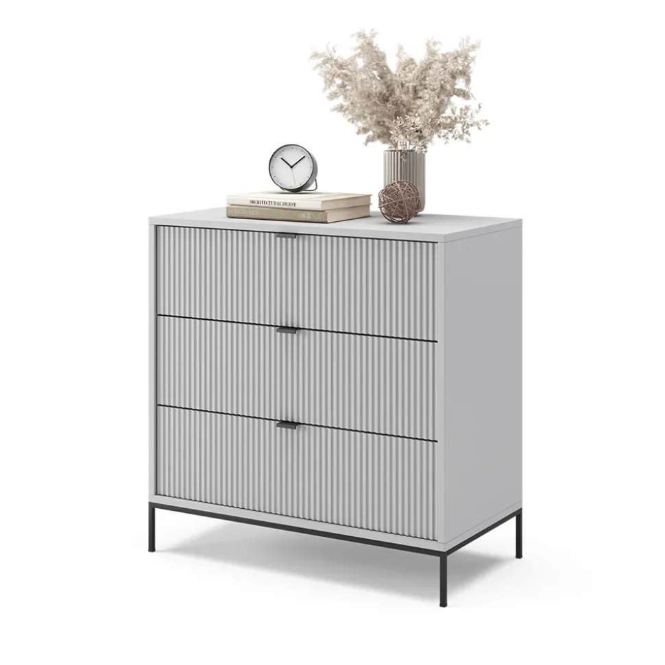 - Die Vicco Kommode Eliza mit 3 Schubfächern begeistert durch modernes Design – in grau, 80 x 42 cm. Ideal für Wohn- und Schlafzimmer. Kommodenschrank, Sideboard oder Anrichte – vielseitig einsetzbar.