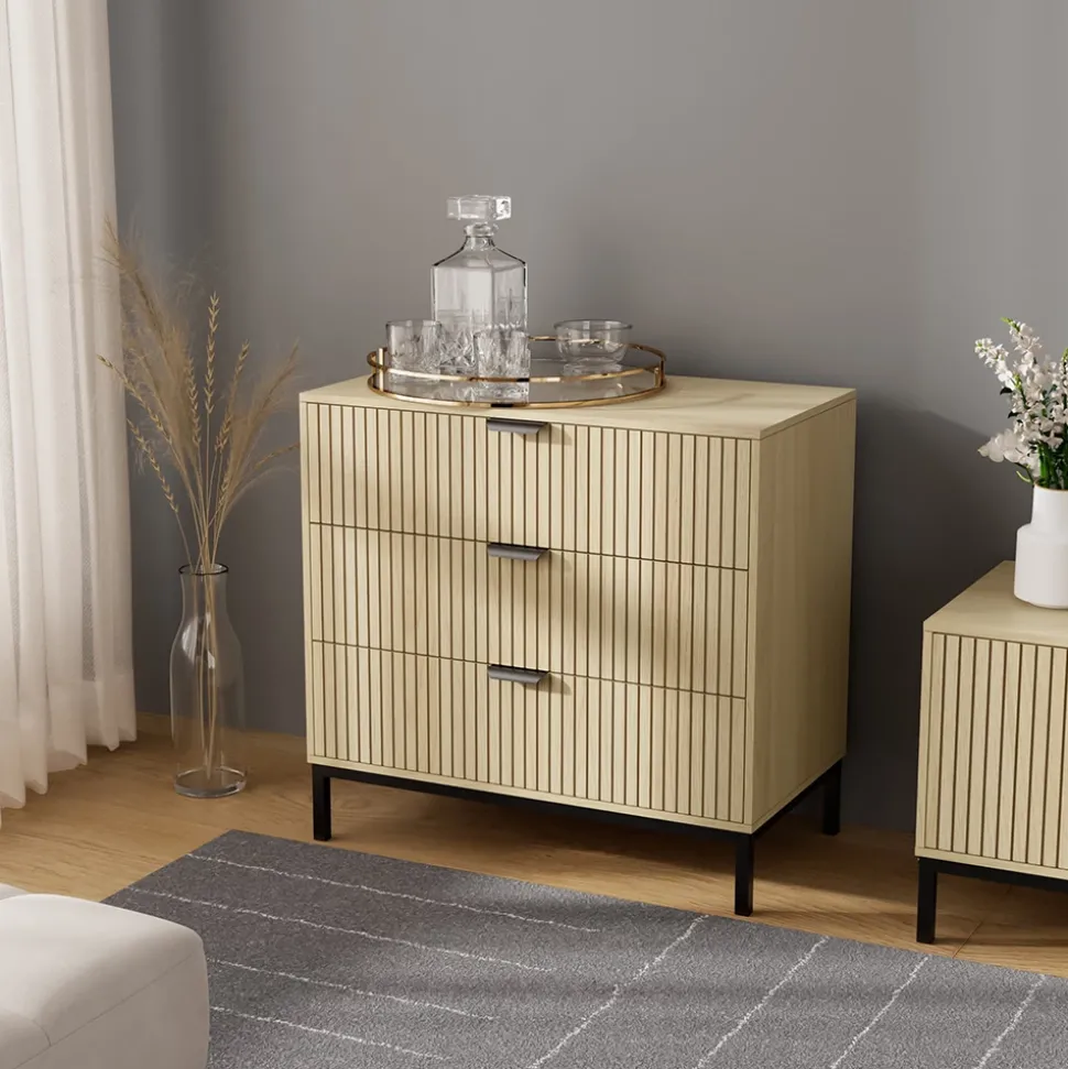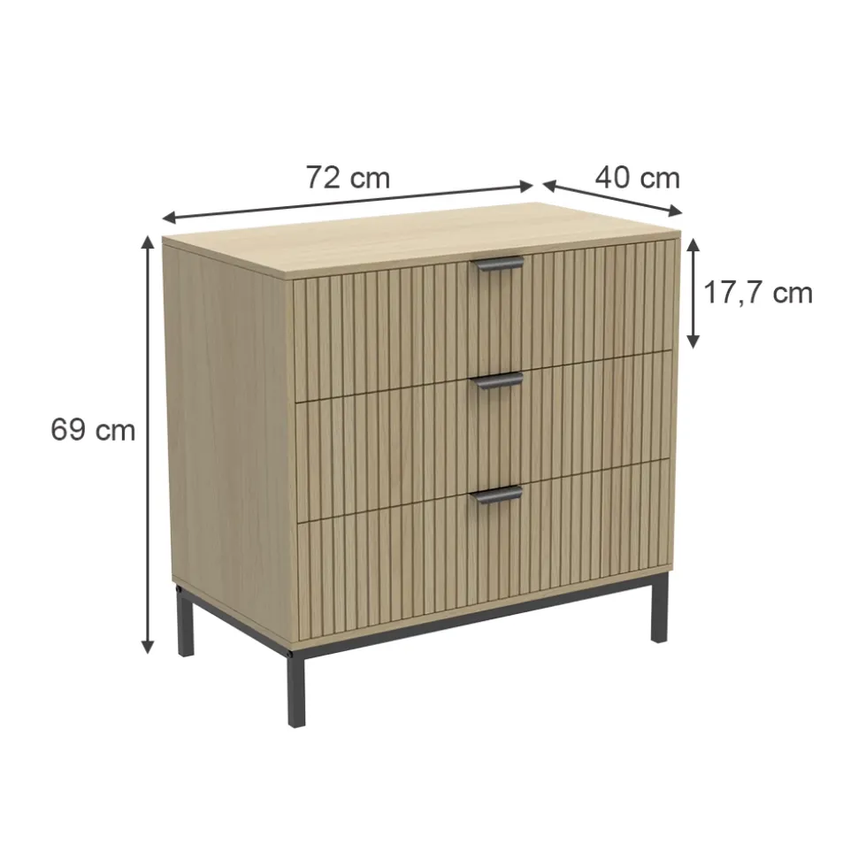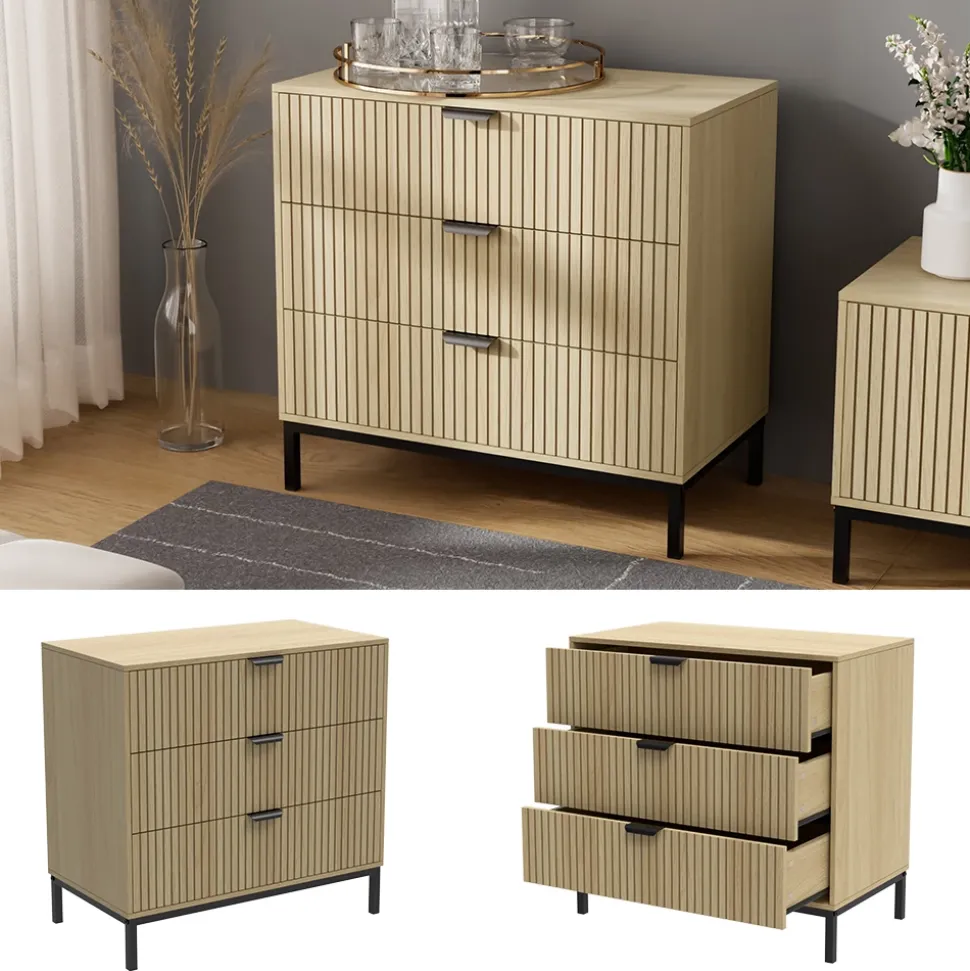 Die Kommode Lennox ist die perfekte Ergänzung für Ihr Zuhause – sei es im Schlafzimmer, im Wohnzimmer oder im Flur. Mit seinen geräumigen Schubladen bietet es viel Platz für Ihre persönlichen Gegenstände und hilft dabei, Ordnung zu halten. Das schlichte und elegante Design passt zu jedem Einrichtungsstil und verleiht Ihrem Zuhause ein stilvolles Ambiente. Machen Sie sich das Leben leichter und organisierter mit dem Kommode Lennox – ein Möbelstück, das nicht nur funktional ist, sondern auch Wärme und Gemütlichkeit in Ihr Zuhause bringt.